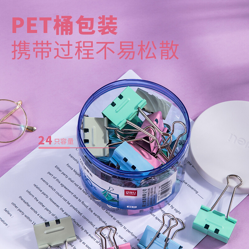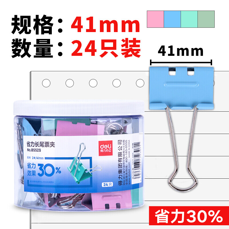 得力(deli)彩色长尾夹8552S【41mm】24支装/筒