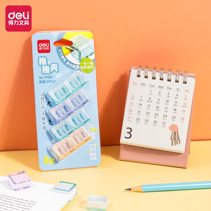 得力(deli)彩色推推夹TP561【20mm】(8只装)
