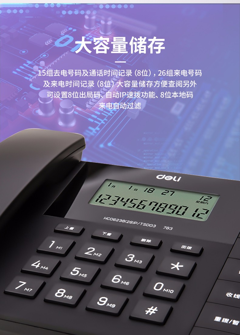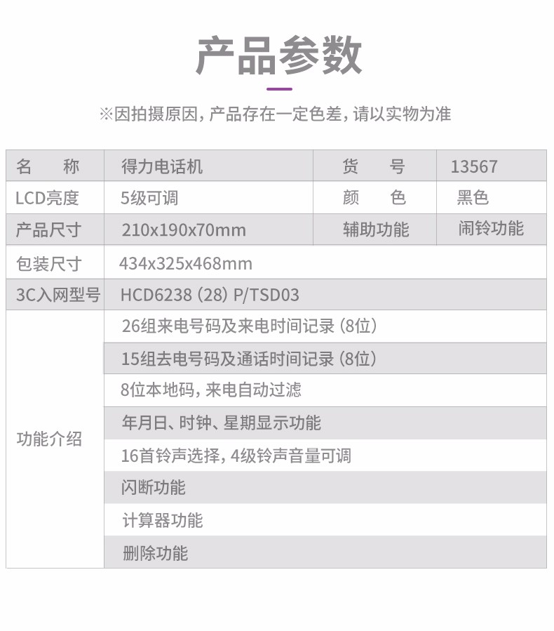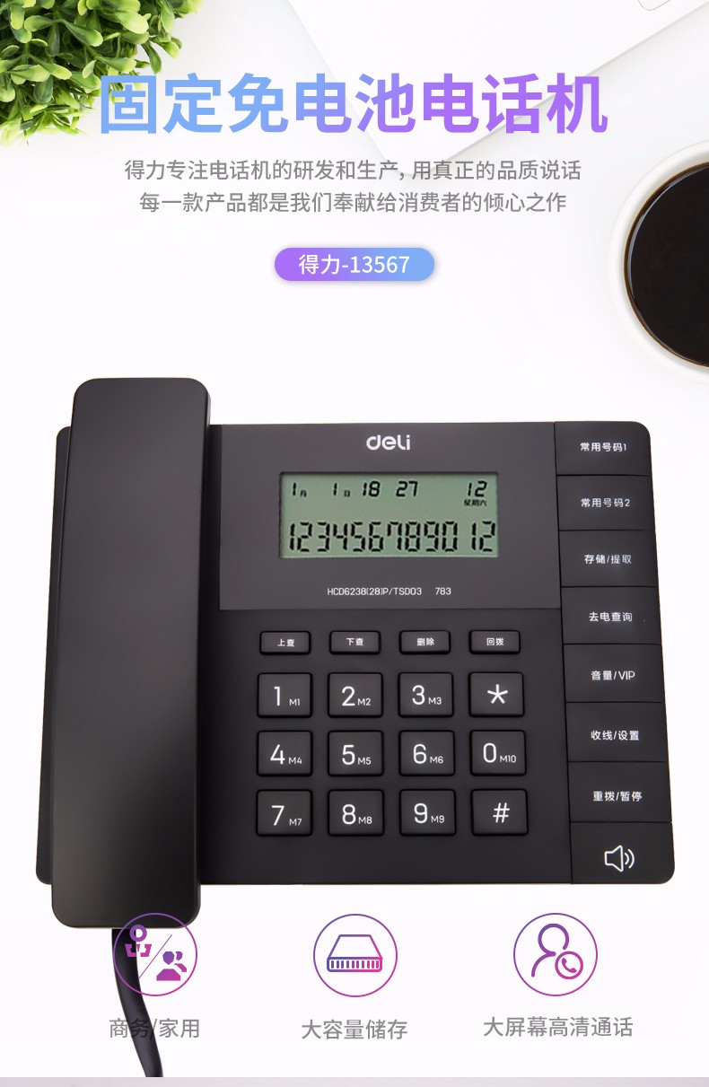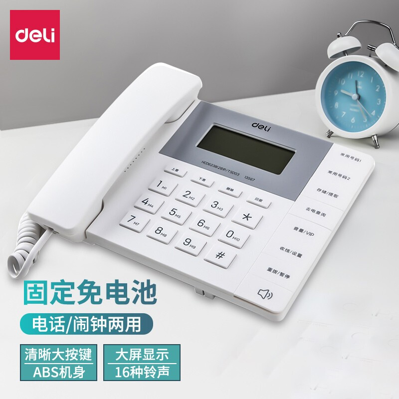 得力(deli) 13567电话机商务办公横式电话机座机免电池时尚造型 白色