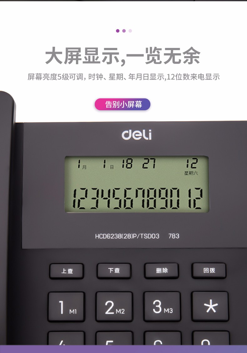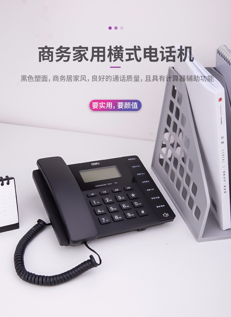 得力(deli) 13567电话机商务办公横式电话机座机免电池时尚造型 黑色