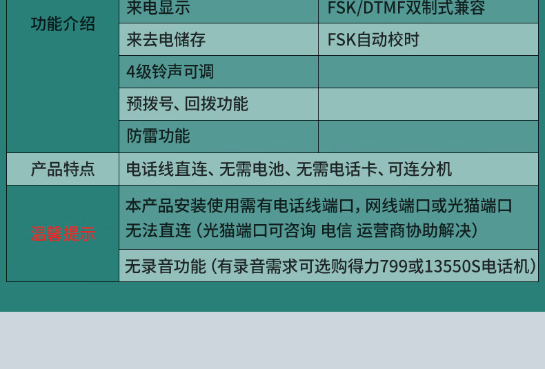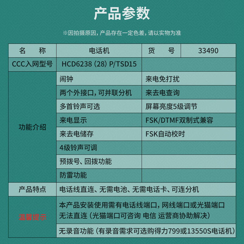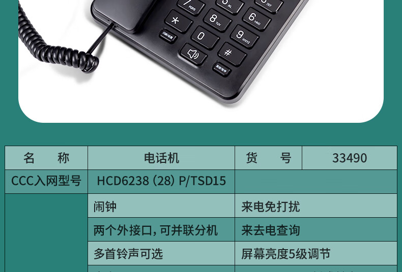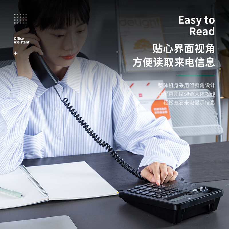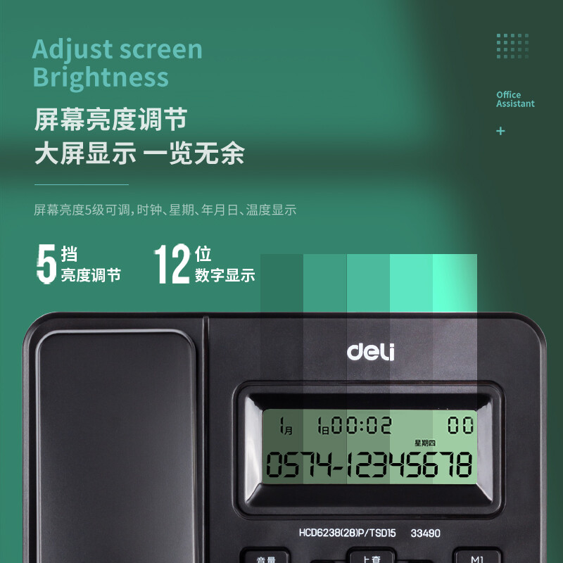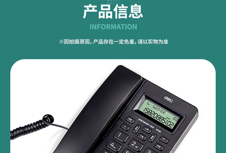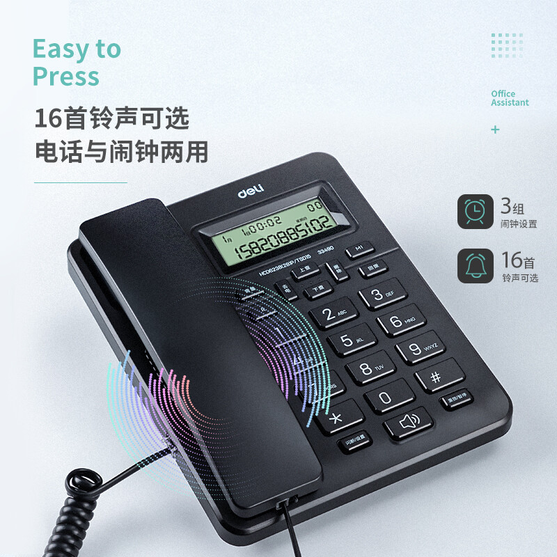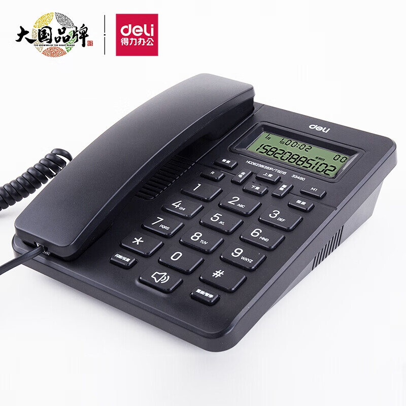 得力(deli)电话机 办公 免提通话 大字按键 来电显示 33490黑