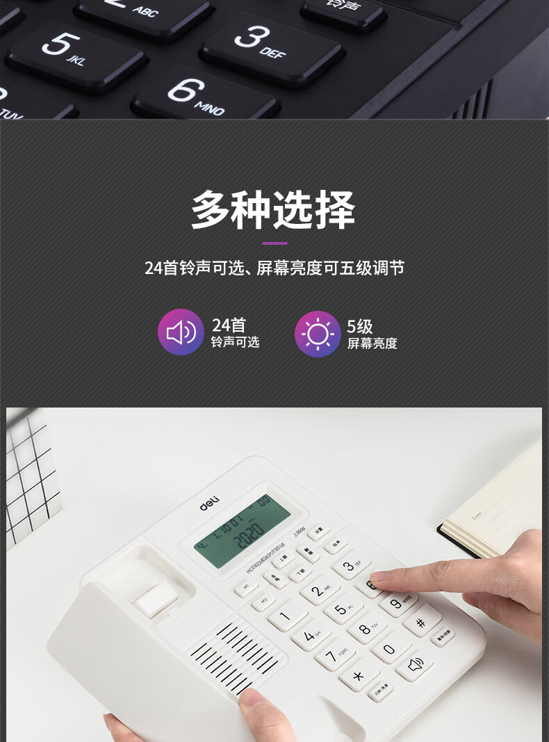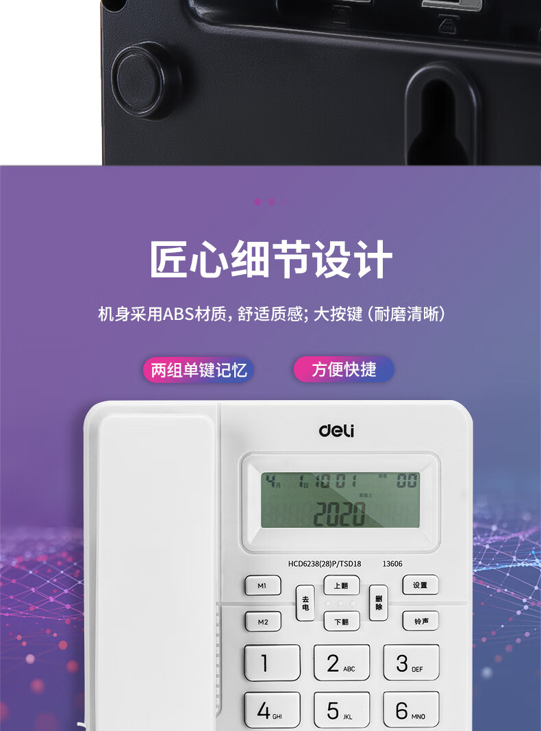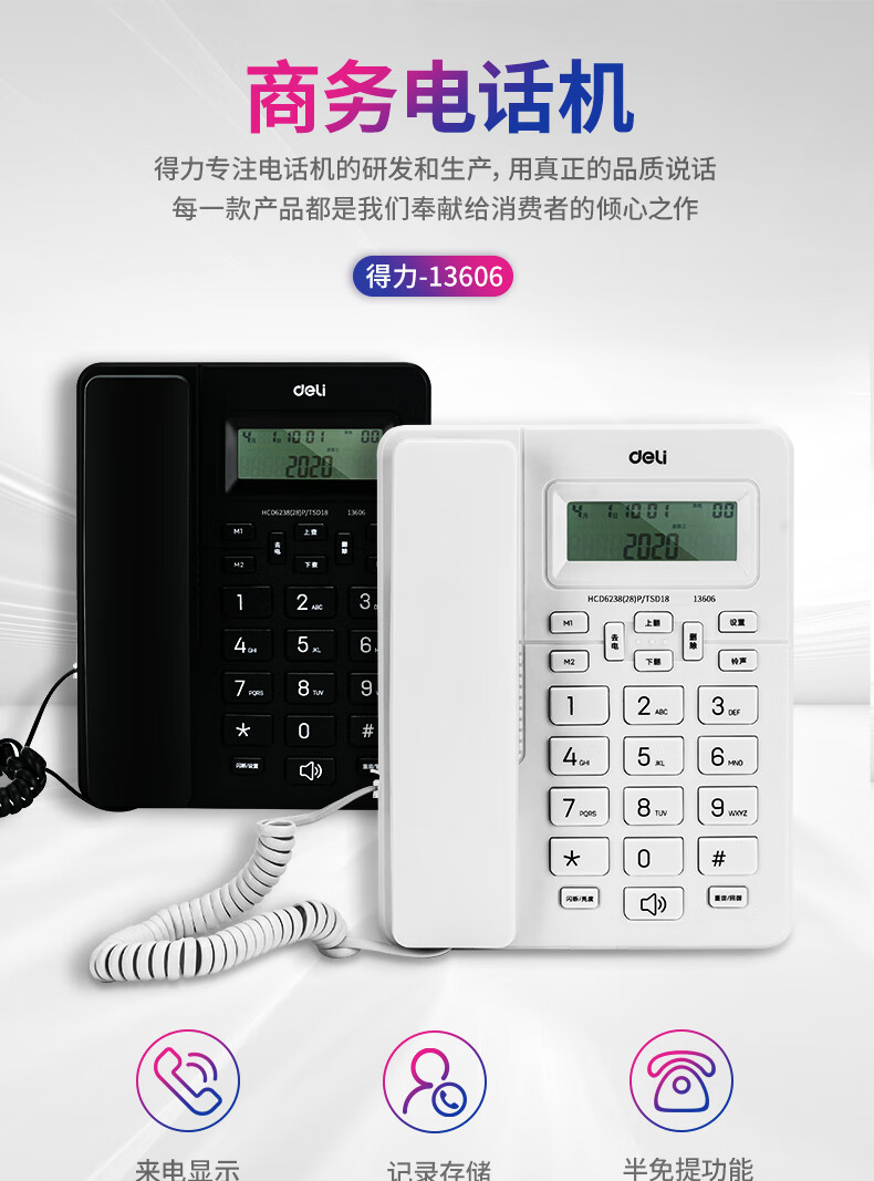 得力(deli)电话机座机 来去电查询 可接分机 13606白
