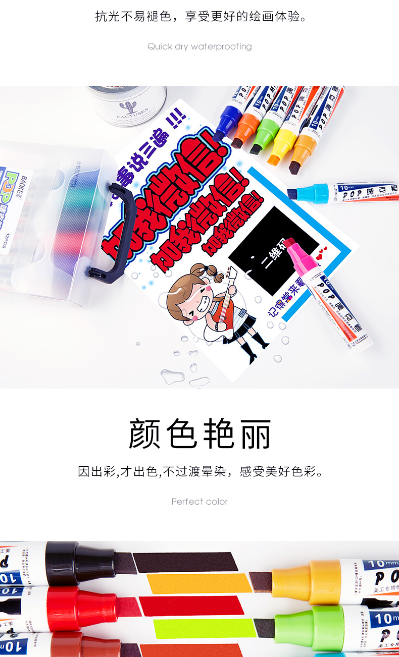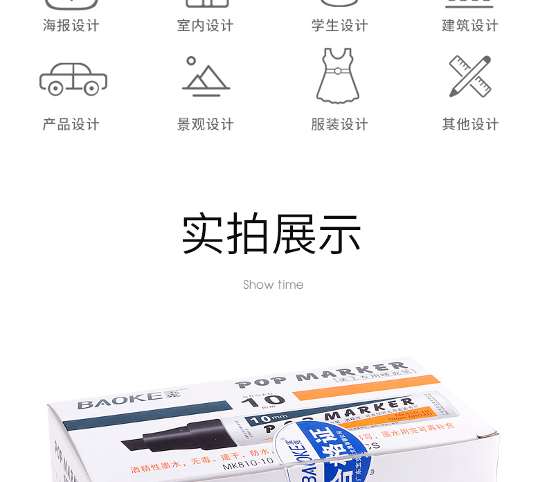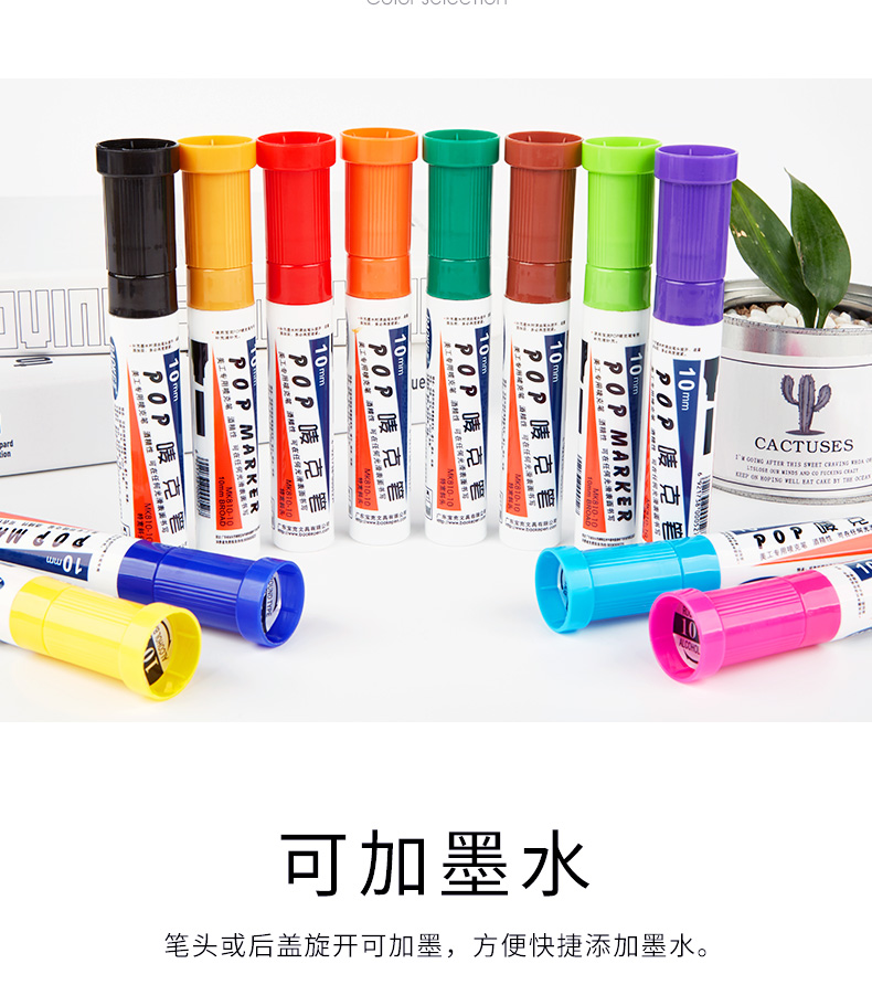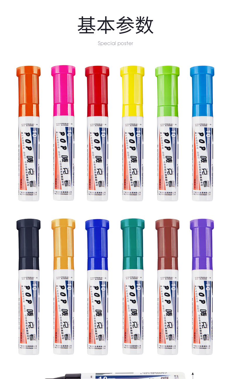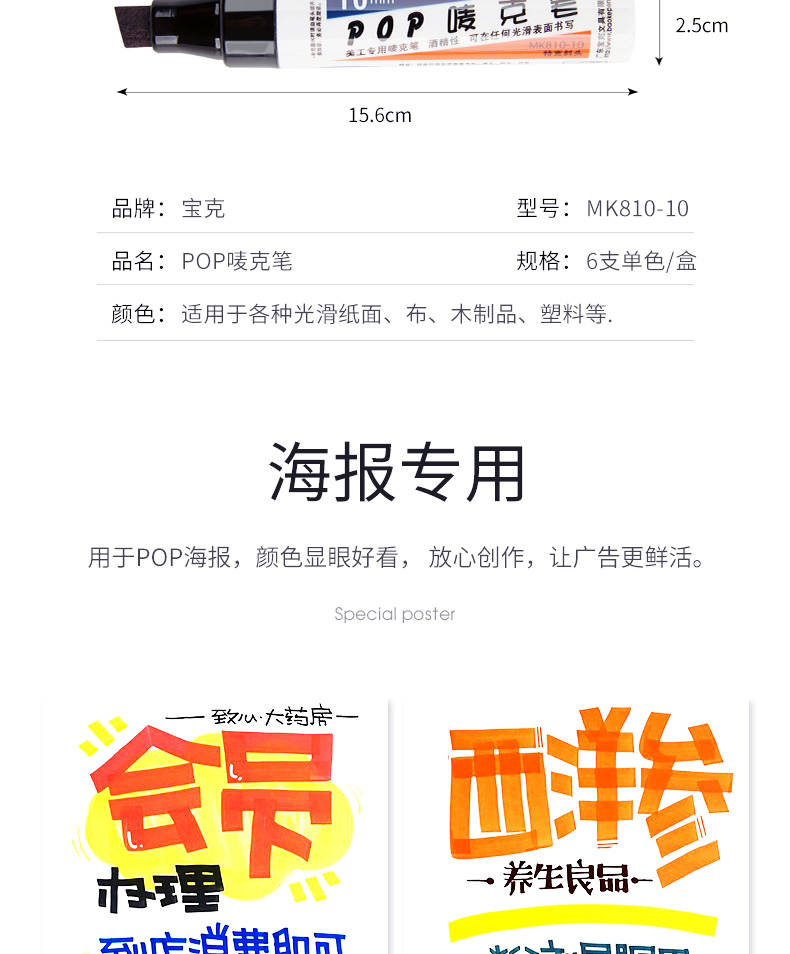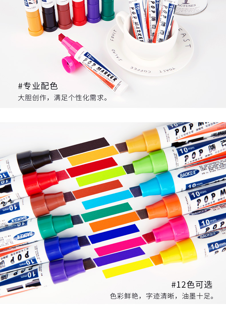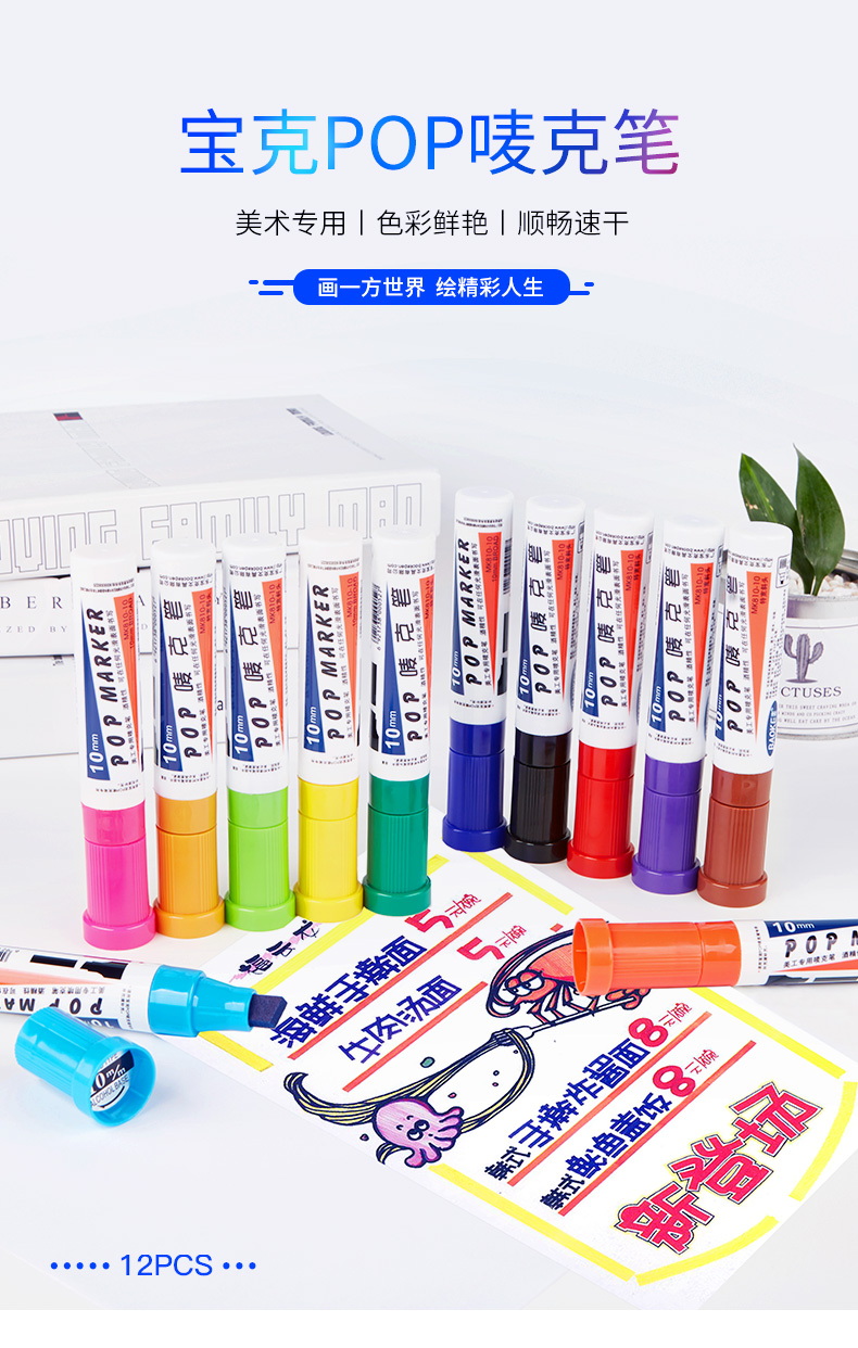 宝克(BAOKE)10mm POP笔唛克笔马克笔记号 浅蓝色