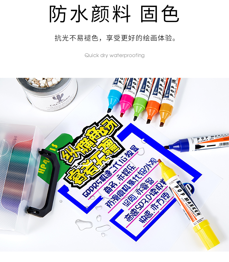 宝克6mm马克笔POP记号笔麦克笔 浅蓝色
