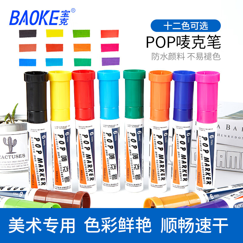 宝克6mm马克笔POP唛克笔记号笔 橙色