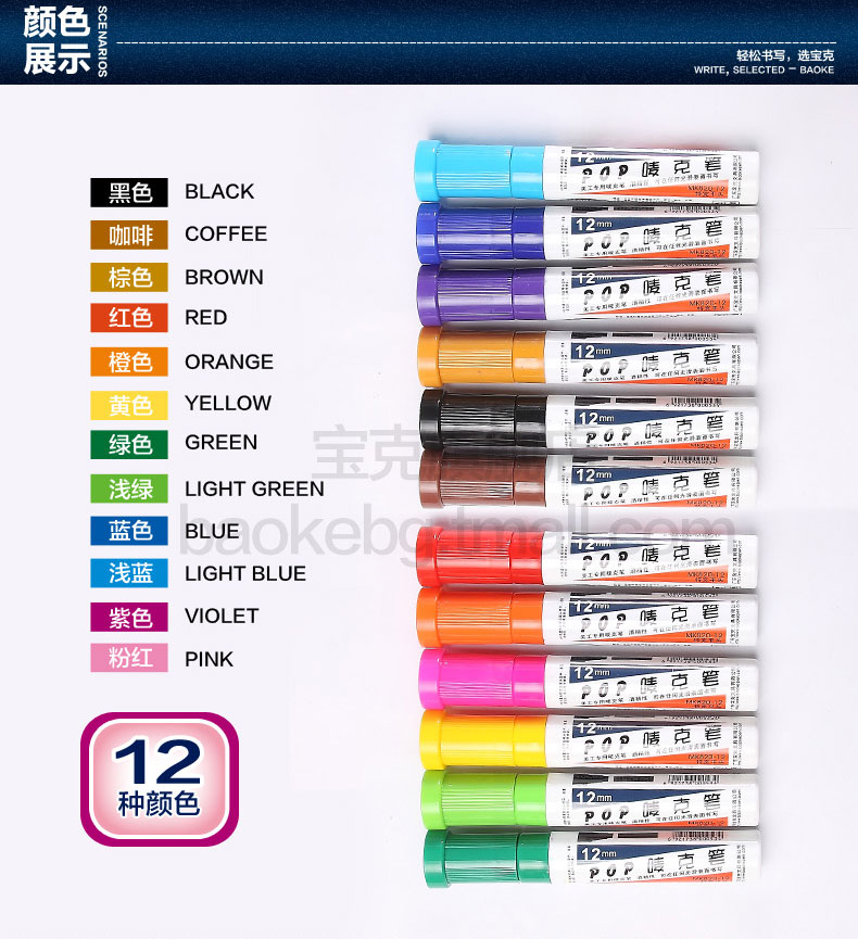 宝克(BAOKE)pop笔12mm马克笔记号笔 黄色
