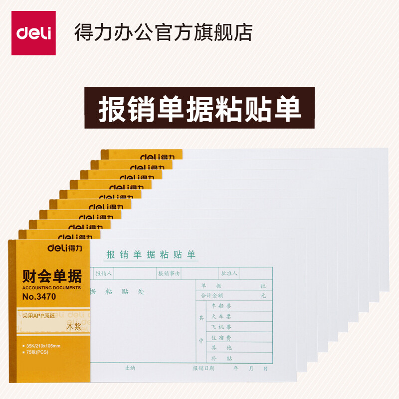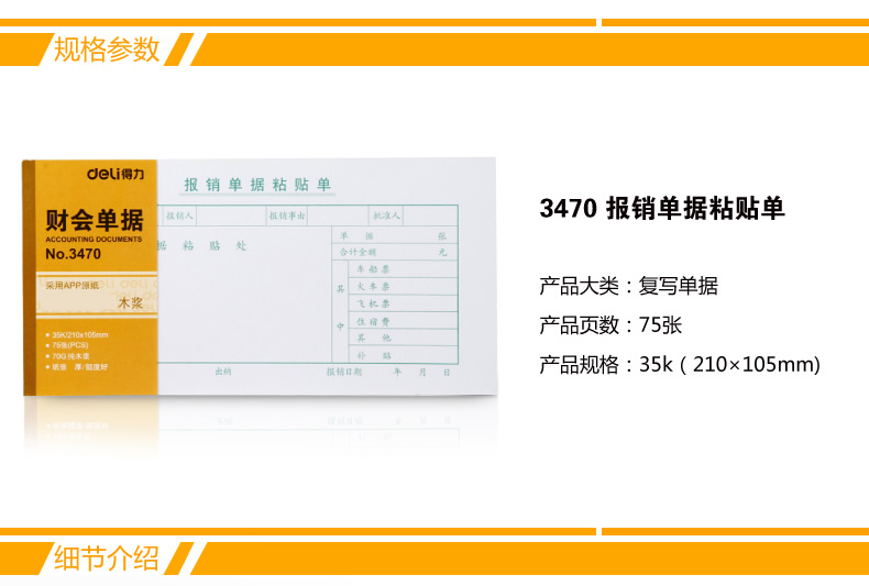 得力(deli) 3470 报销单据粘贴单 35K 75张 黄色