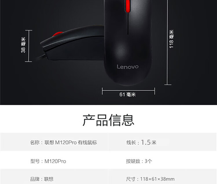联想 笔记本/台式有线鼠标 M120 Pro