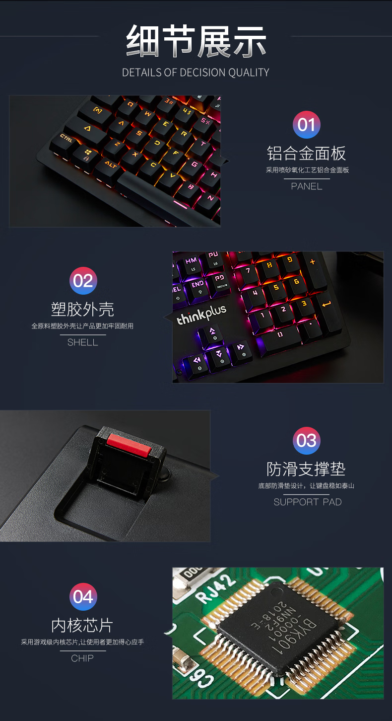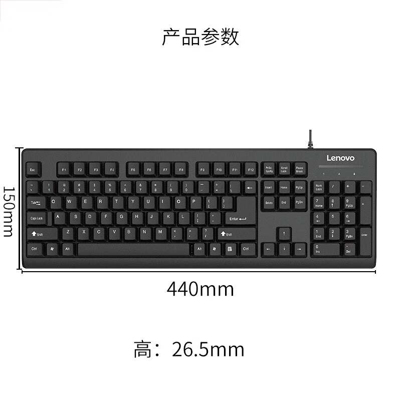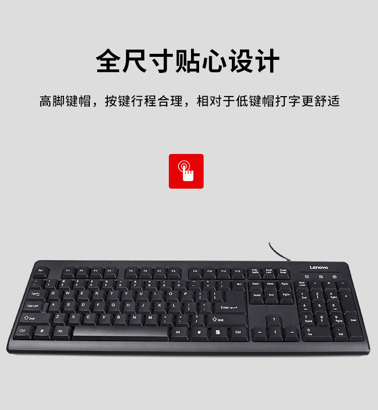 联想(Lenovo)USB接口 轻薄耐用 黑色K4800S有线键盘