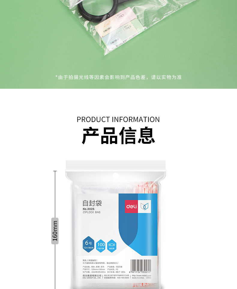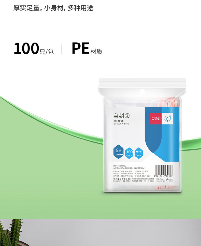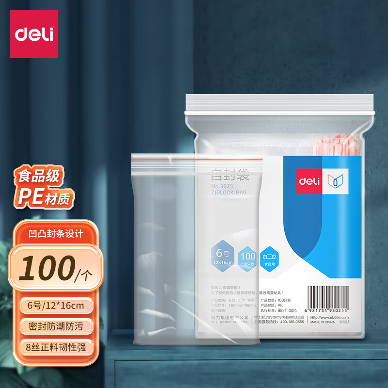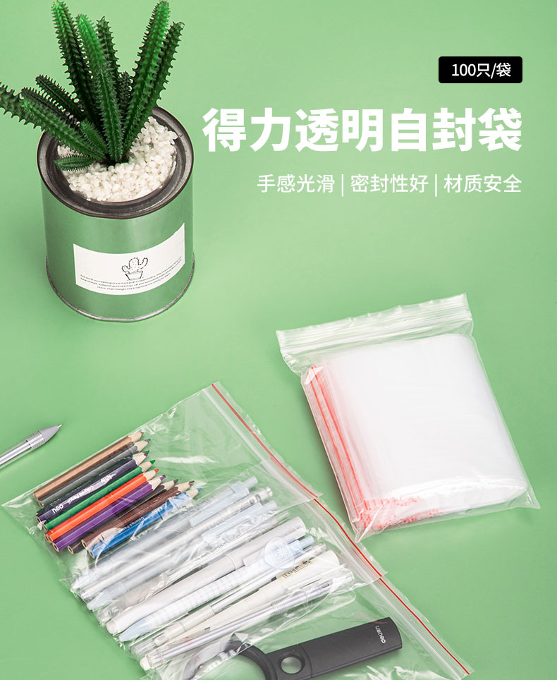 得力(deli)食品密封袋6号17*12cm 加厚防水PE透明收纳防尘 (100只透明/包) 3025