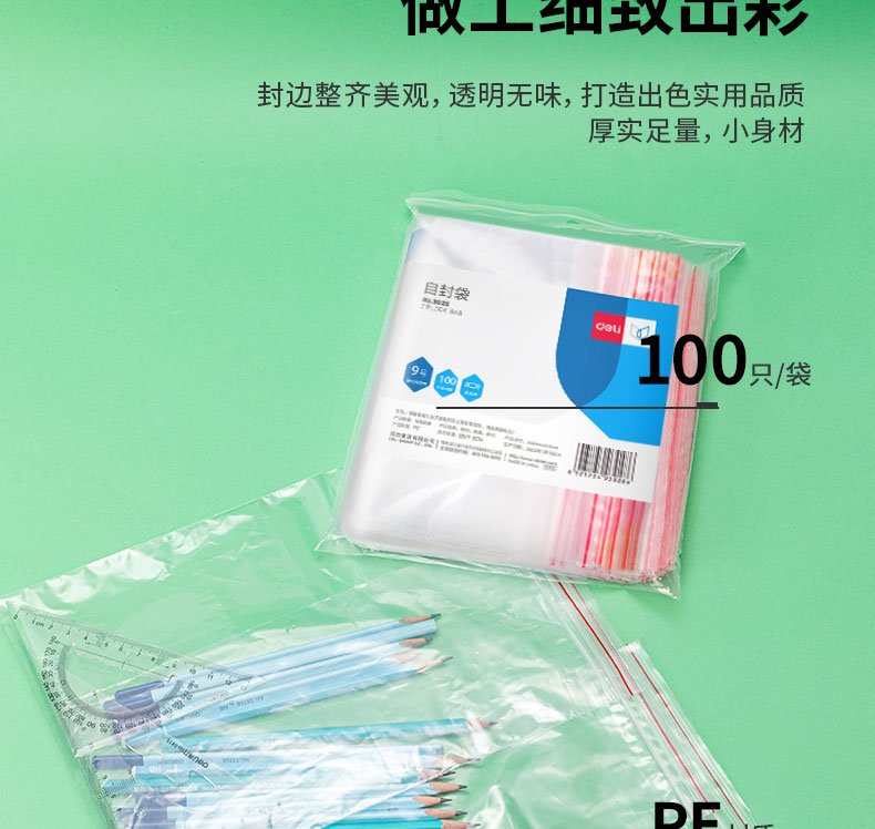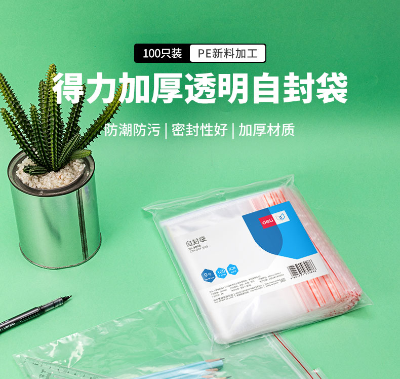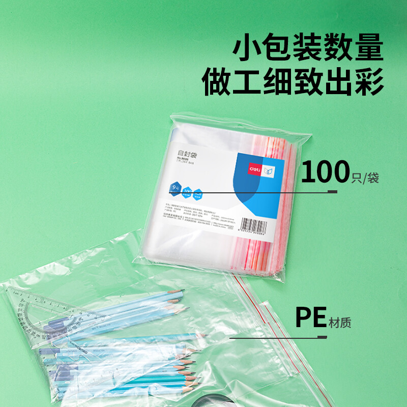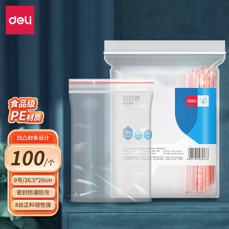 得力(deli)食品密封袋9号28*20cm 加厚防水PE透明收纳防尘 (100只透明/包) 3028