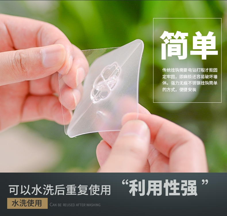 挂钩粘钩免打孔透明无痕贴防水可旋转