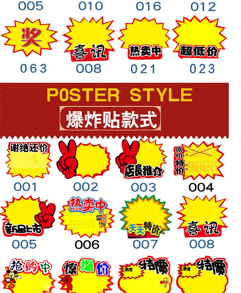 爆炸贴 超市价格标签中号 13*17CM(100张/包)
