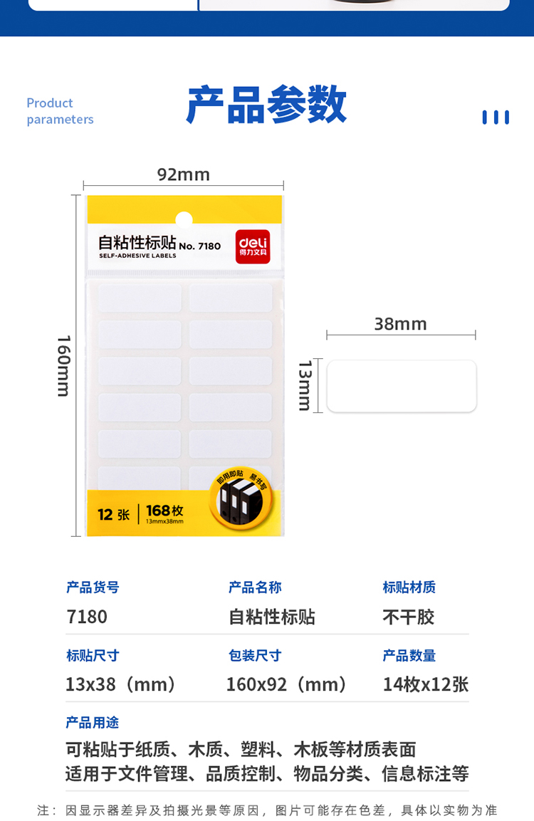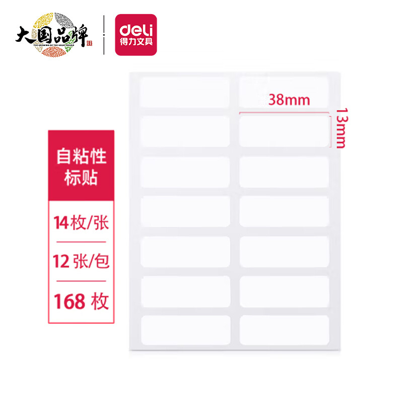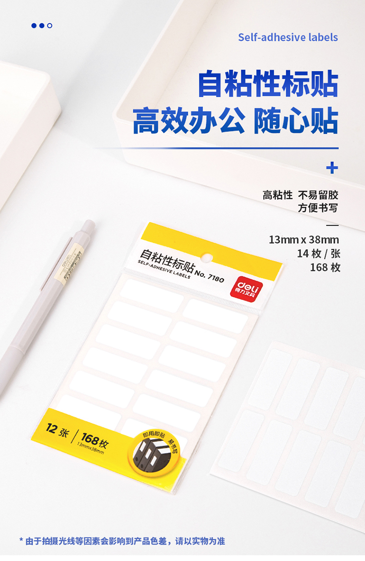 得力(deli)168枚13×38mm不干胶便利贴便签纸标签贴纸自粘性标贴 14枚/张 7180-168