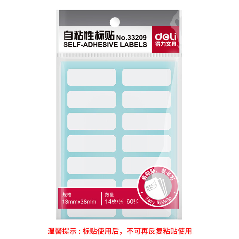 得力(deli)840枚13×38mm不干胶标签贴纸自粘性标贴便利贴姓名贴便签纸 14枚/张33209