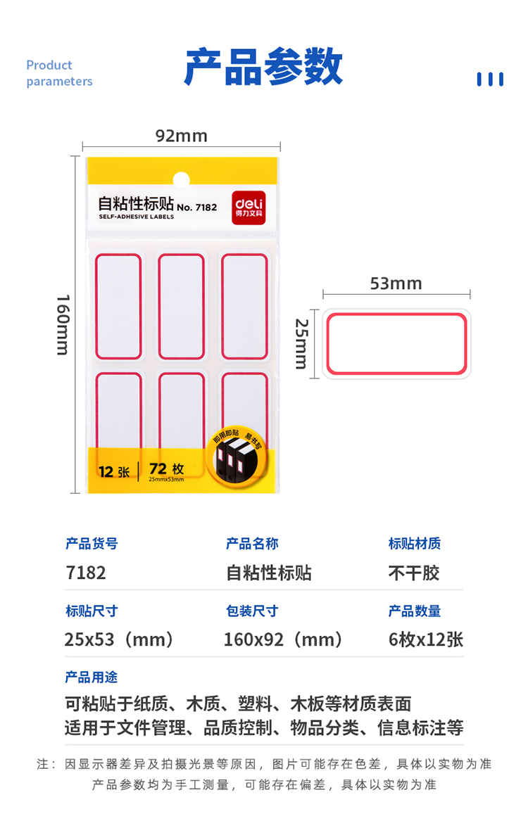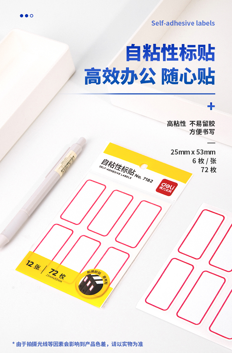 得力(deli)72枚25×53mm不干胶标签贴纸自粘性标贴姓名贴 7182-72