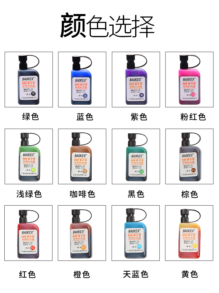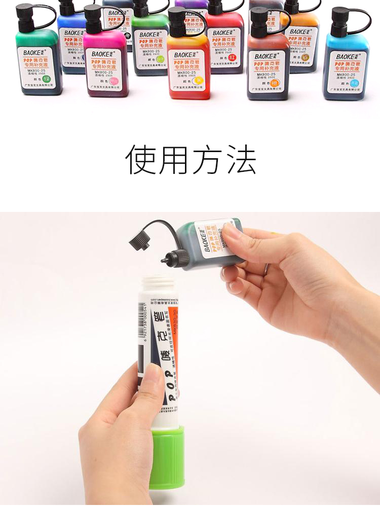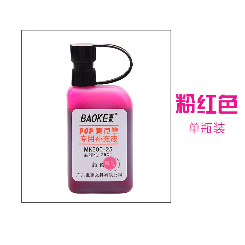 宝克(BAOKE)麦克笔专用补充液MK800-25海报笔墨水POP笔 粉红色