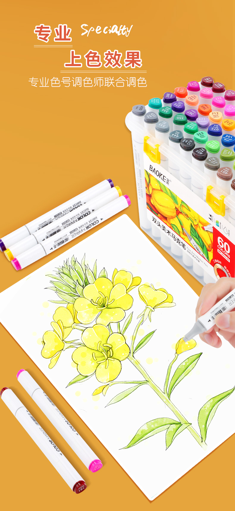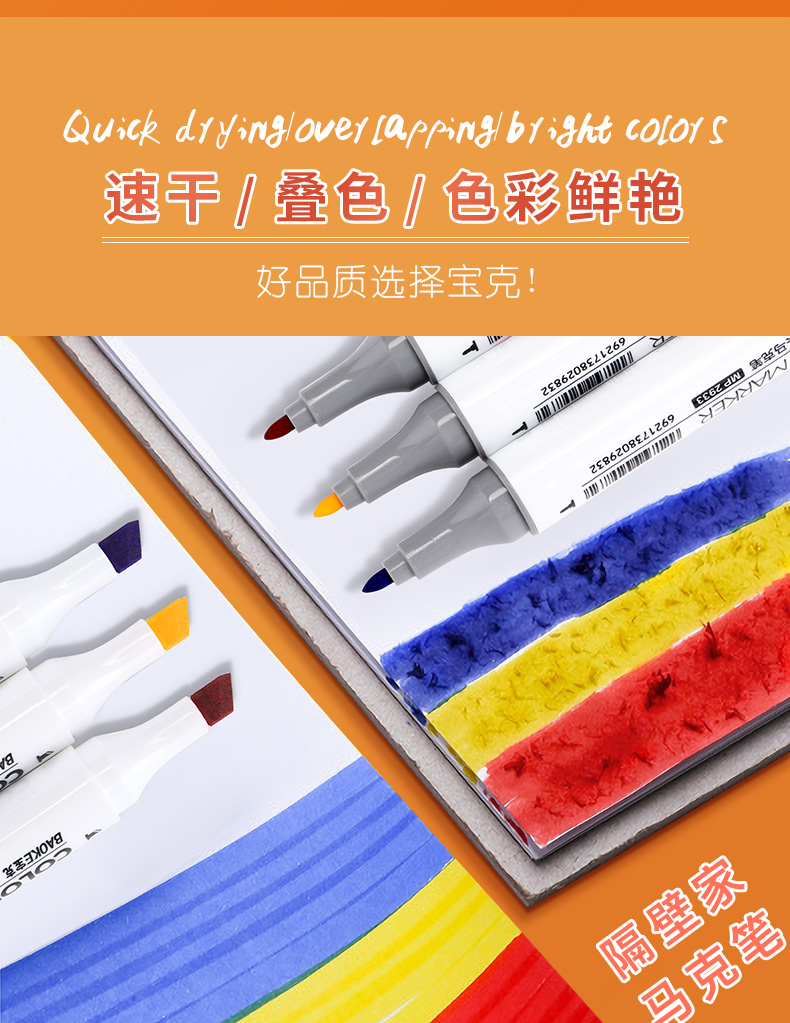 宝克(BAOKE)MP2933-12双头马克笔 酒精油性速干三角笔杆 12色装/盒