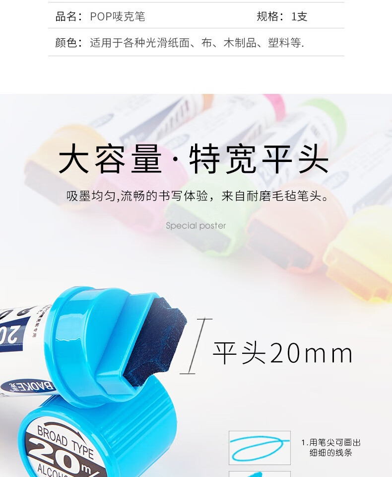 宝克pop笔20mm平头马克 记号笔 棕色