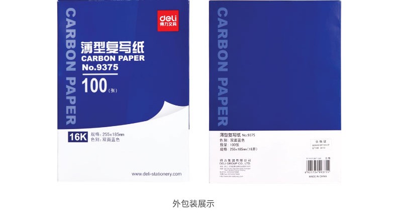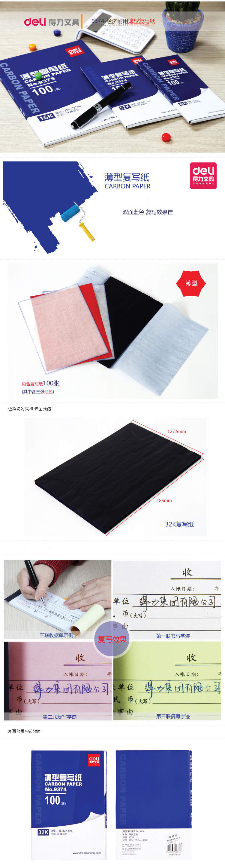 得力(deli) 耐用薄型复写纸(蓝) 9370(48K)