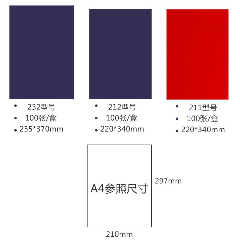 上海复写纸48K双面薄型复写纸 红色复写纸 2840-红色复写纸(100张/盒)