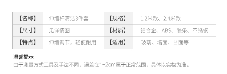 1.2米擦窗器玻璃刮涂水器 加长伸缩杆毛头擦三件套黑色