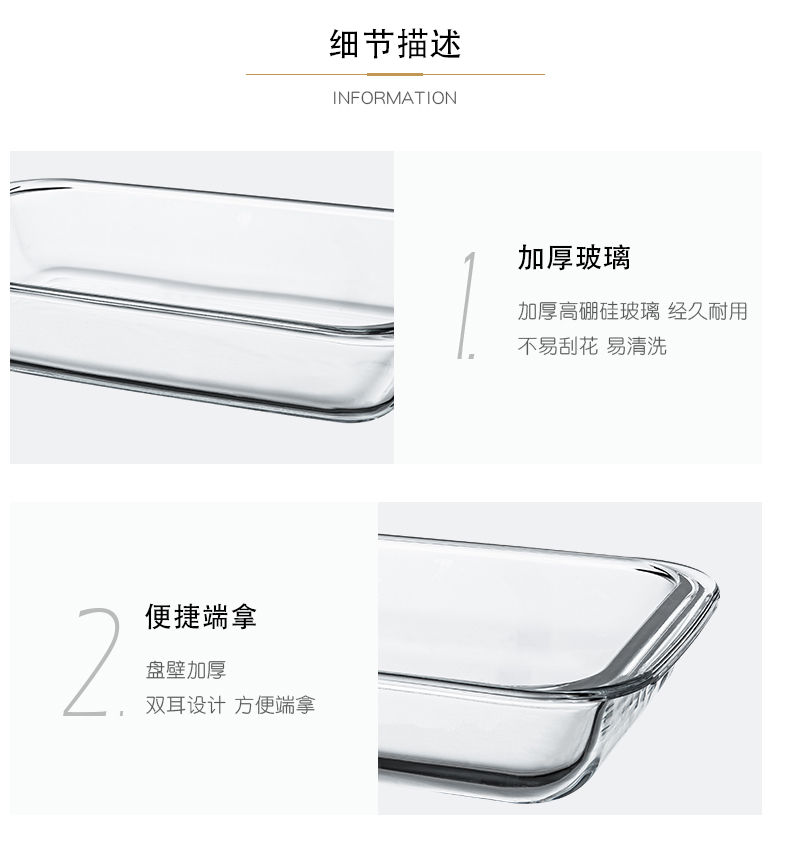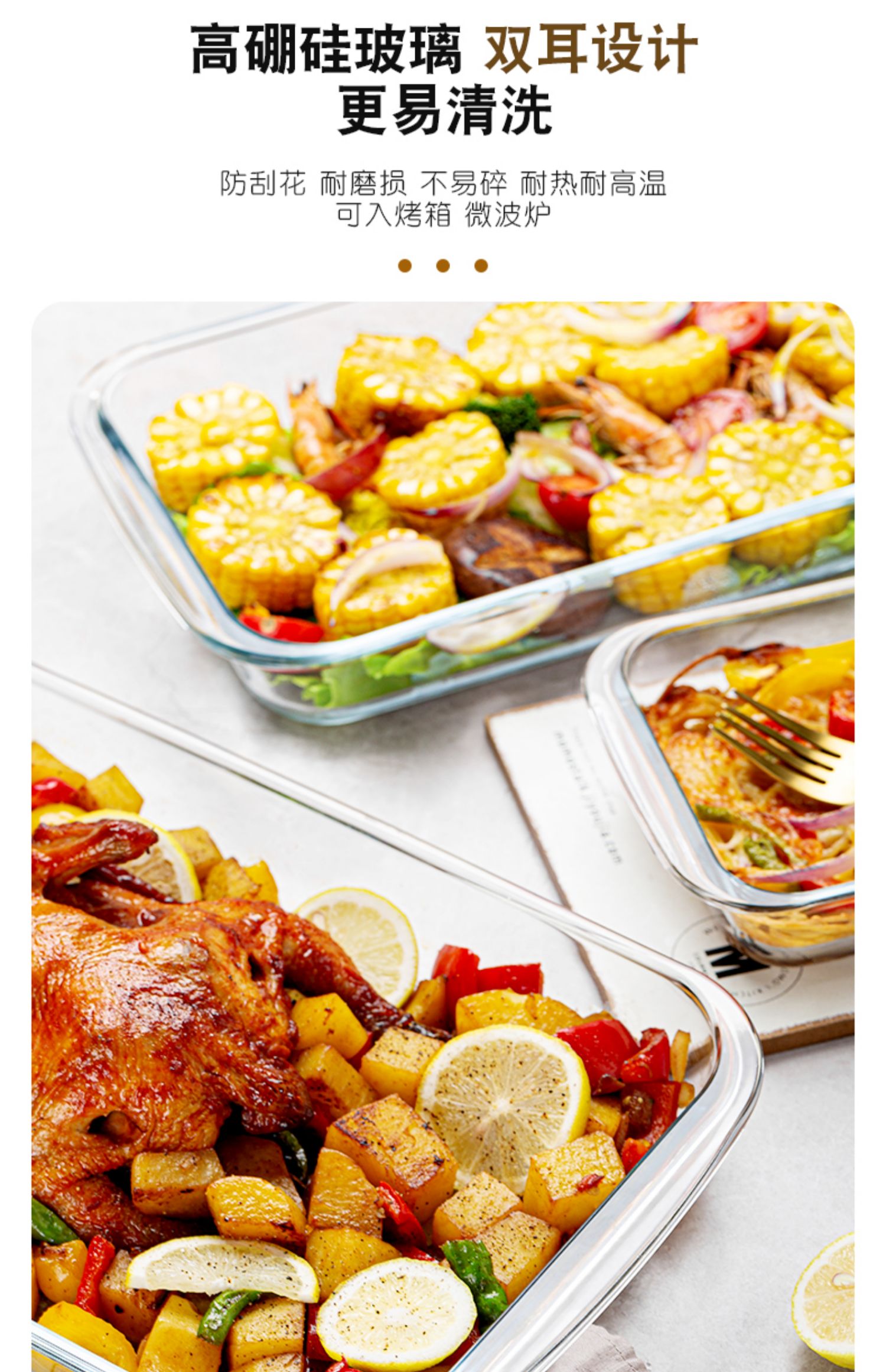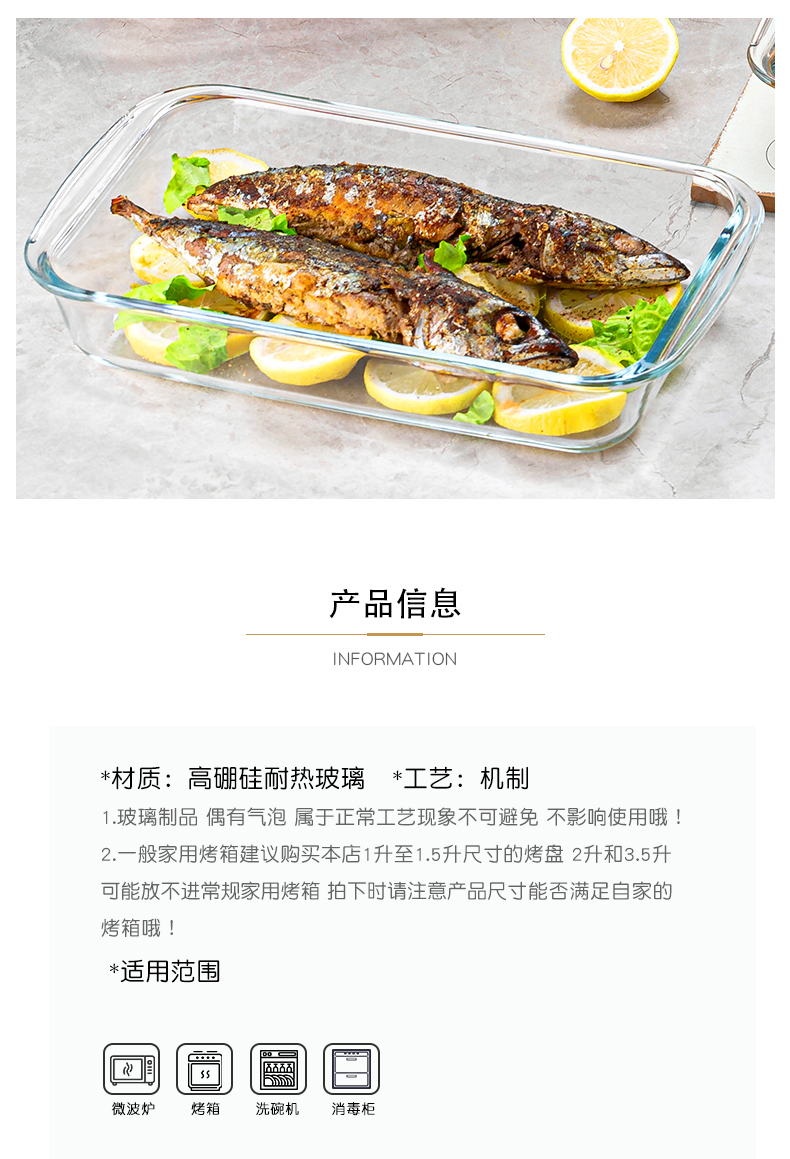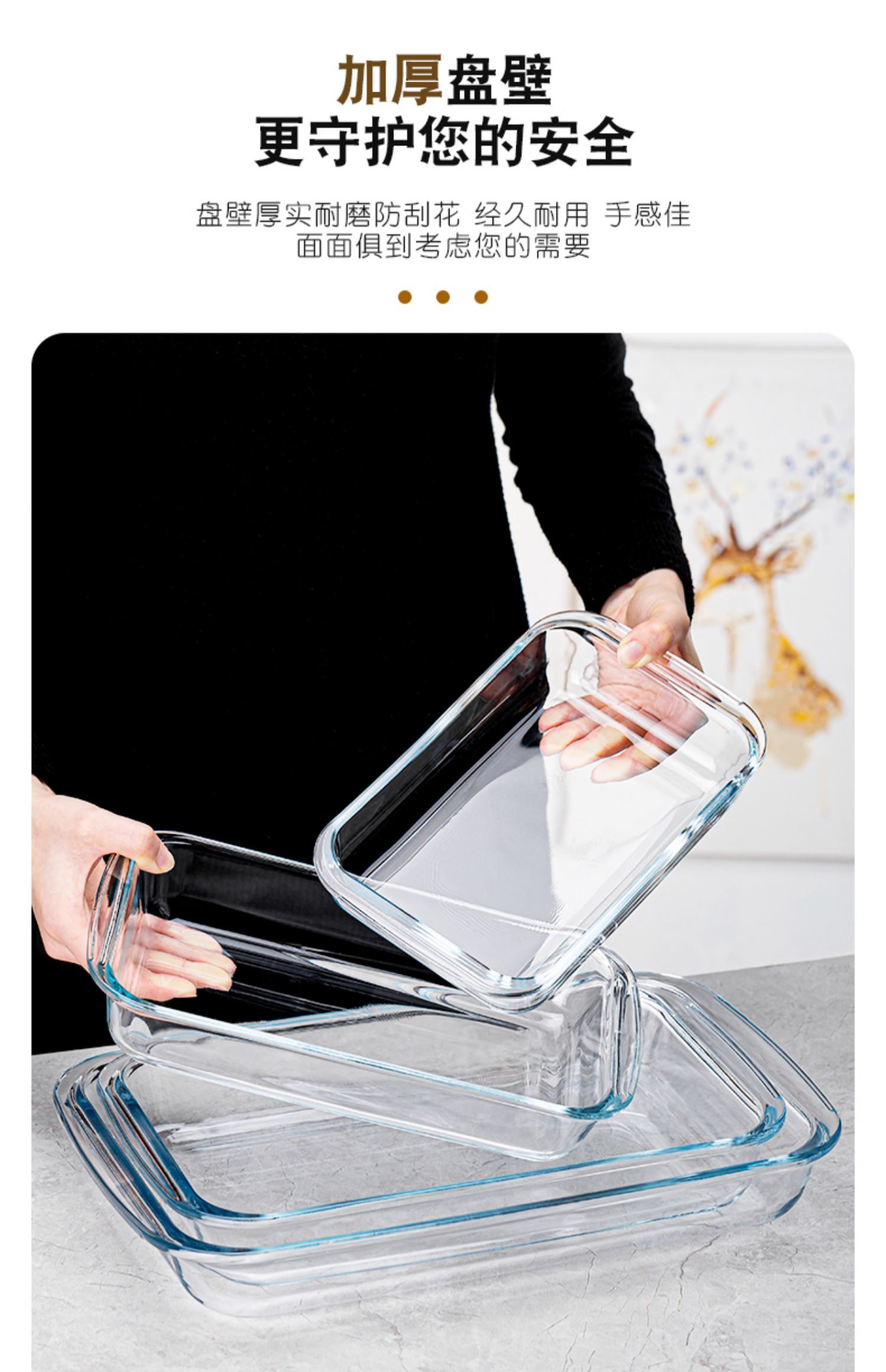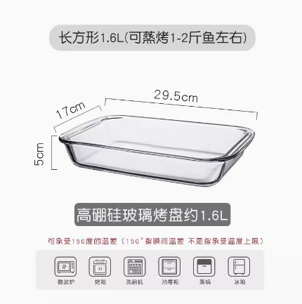 耐高温玻璃烤盘烤箱微波炉加热盘家用菜盘长方形盘子1.6L