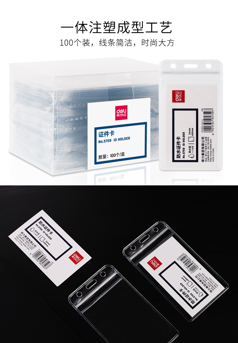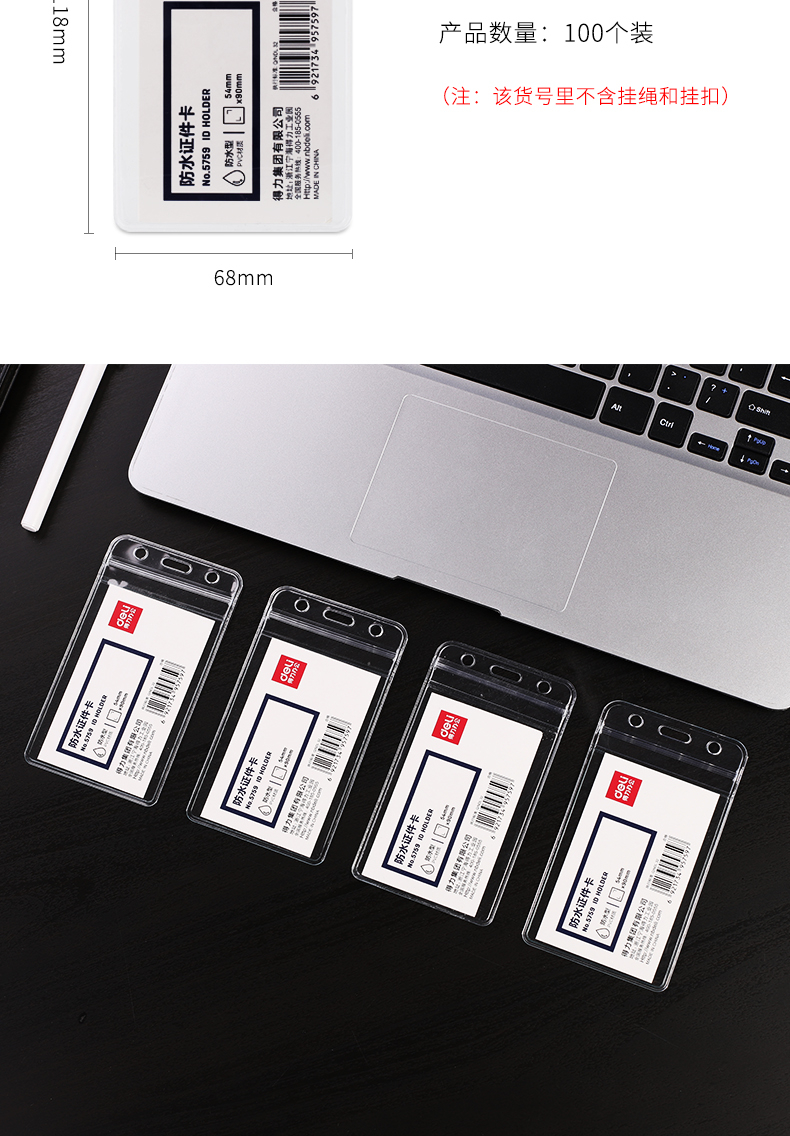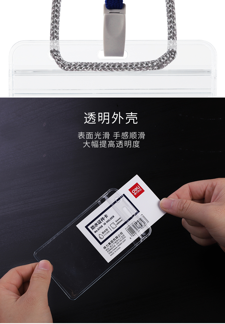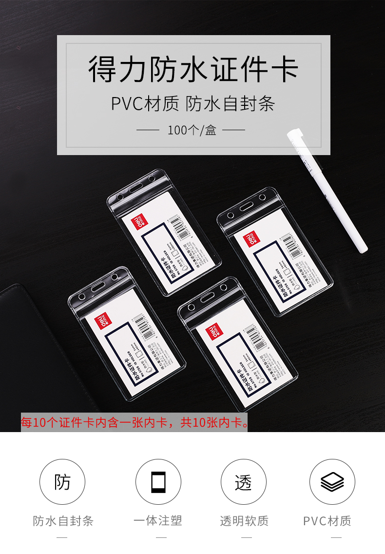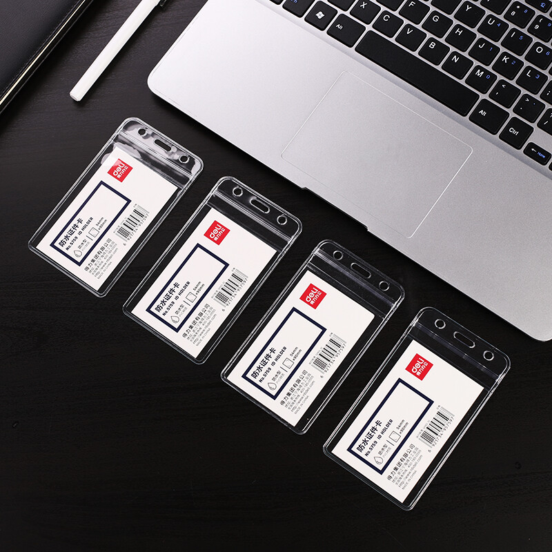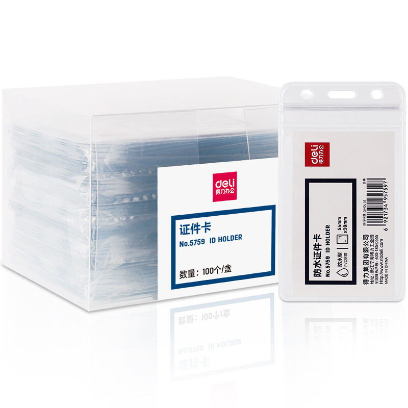 得力(deli)竖式工作牌证件卡套防水证件卡套(透明)(10只/包) 5759