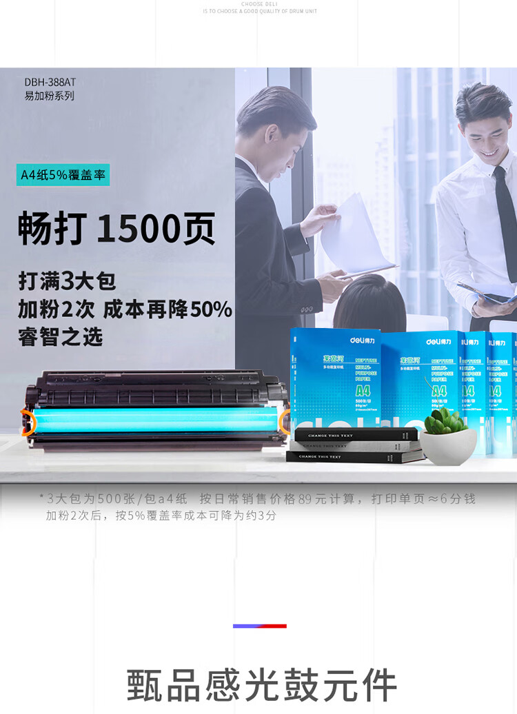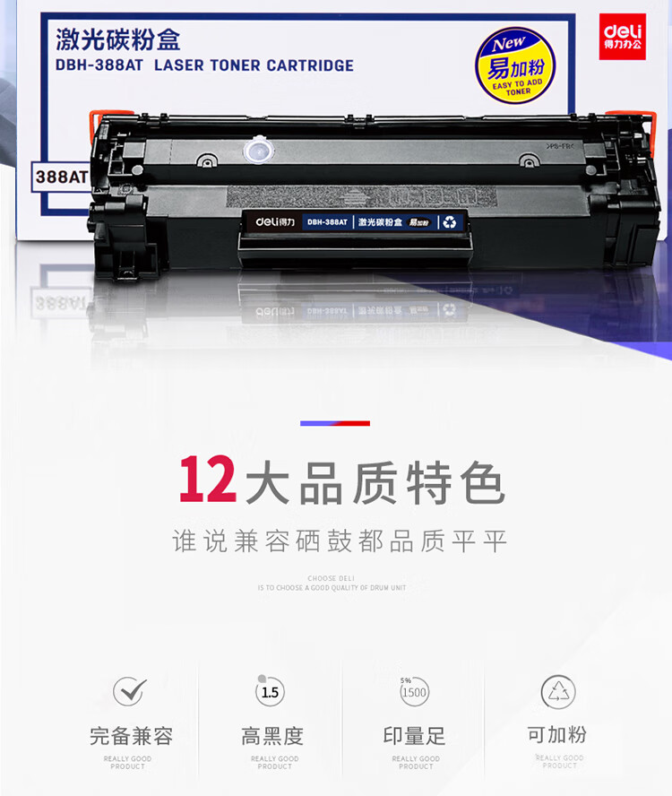 得力(deli)DBH-388AT易加粉硒鼓 88A打印机硒鼓