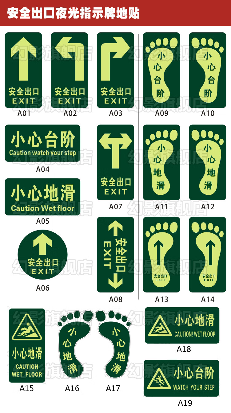 小心台阶标牌 反光安全地贴 29x14cm