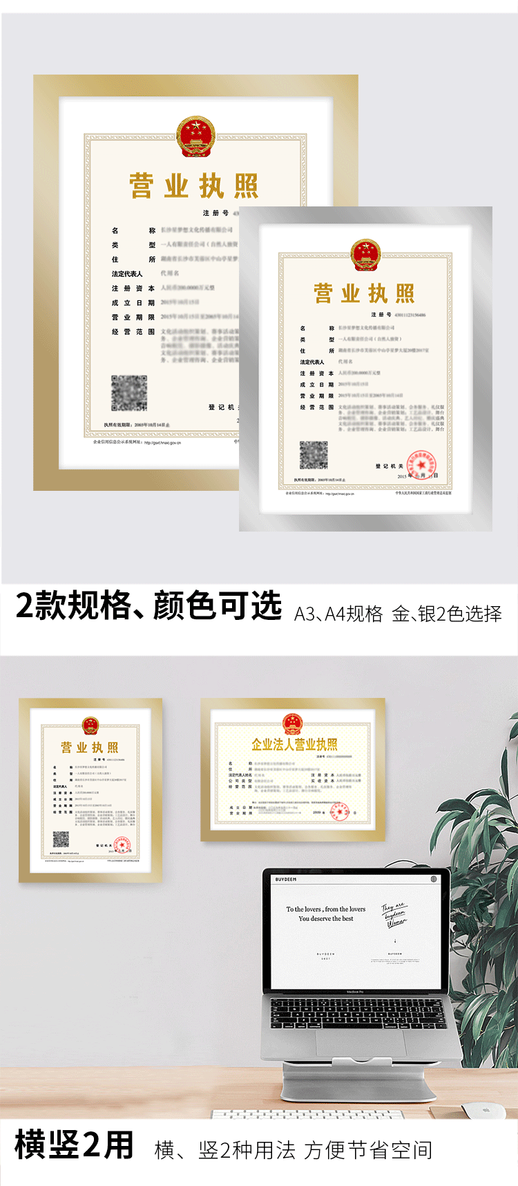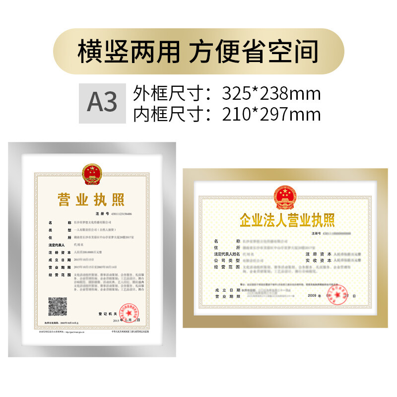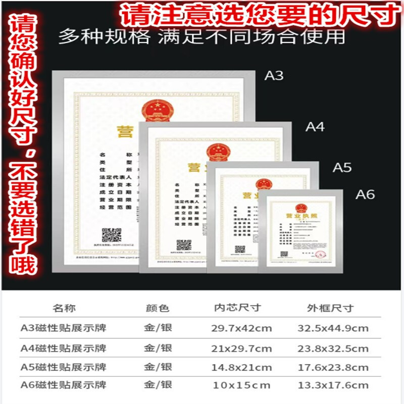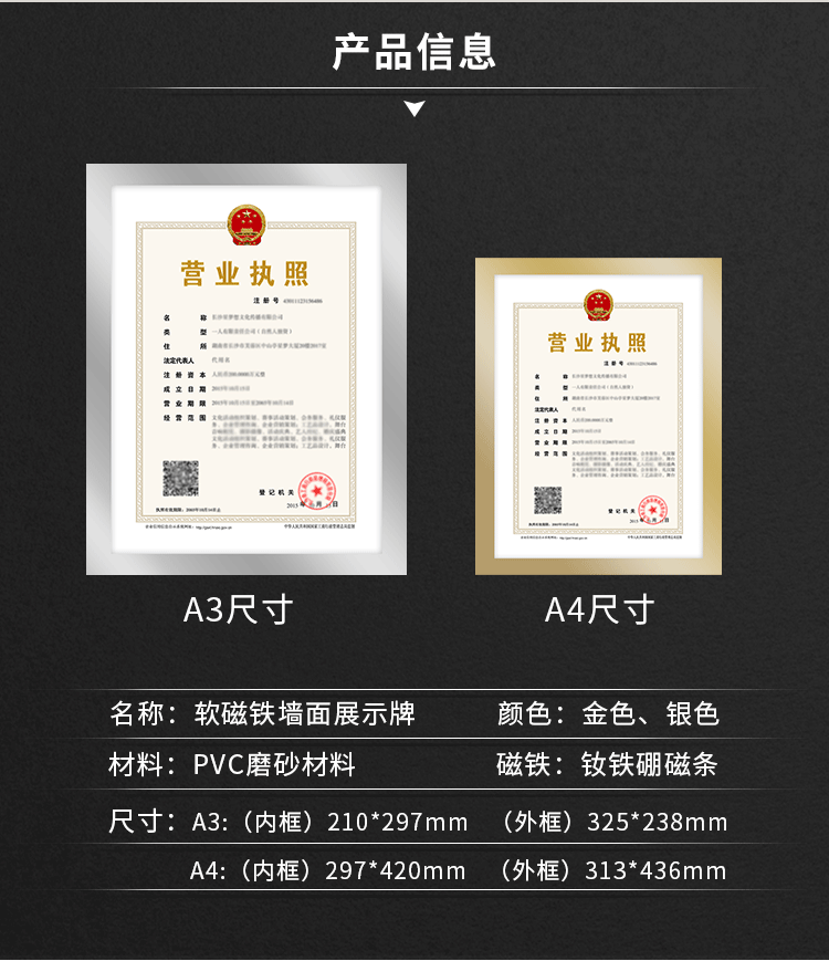 A3磁性执照框 金色3126(297*420mm)