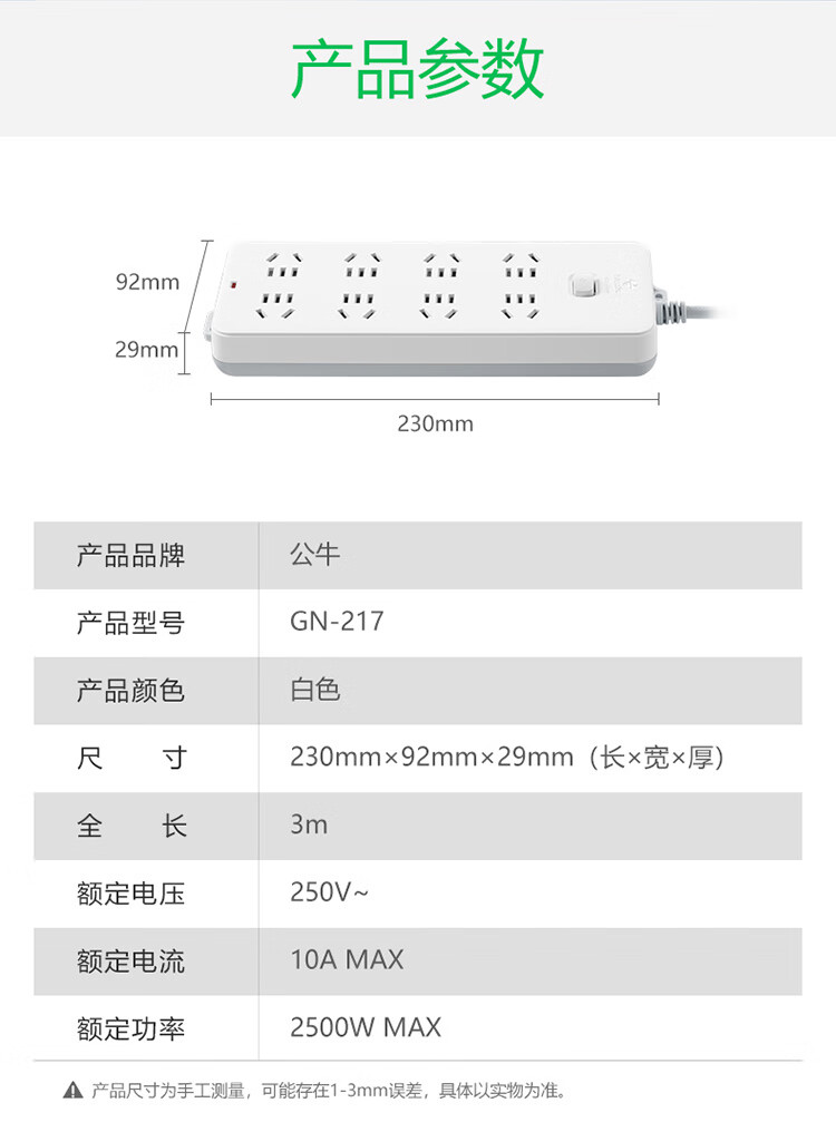 公牛(BULL)GN-217 插座/接线板/拖线板 8位总控全长3米