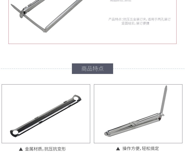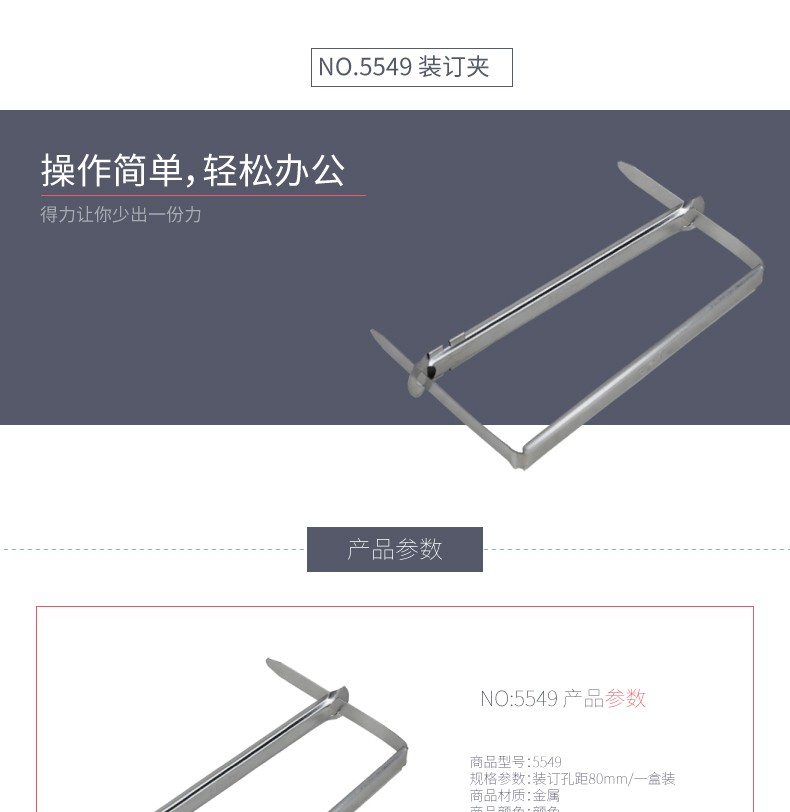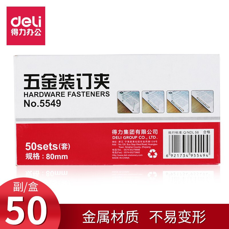 得力5549铁质装订夹 打孔5549金属色80mm(50副/盒)