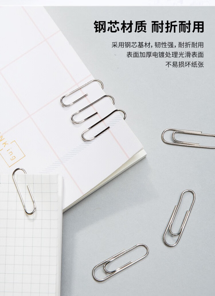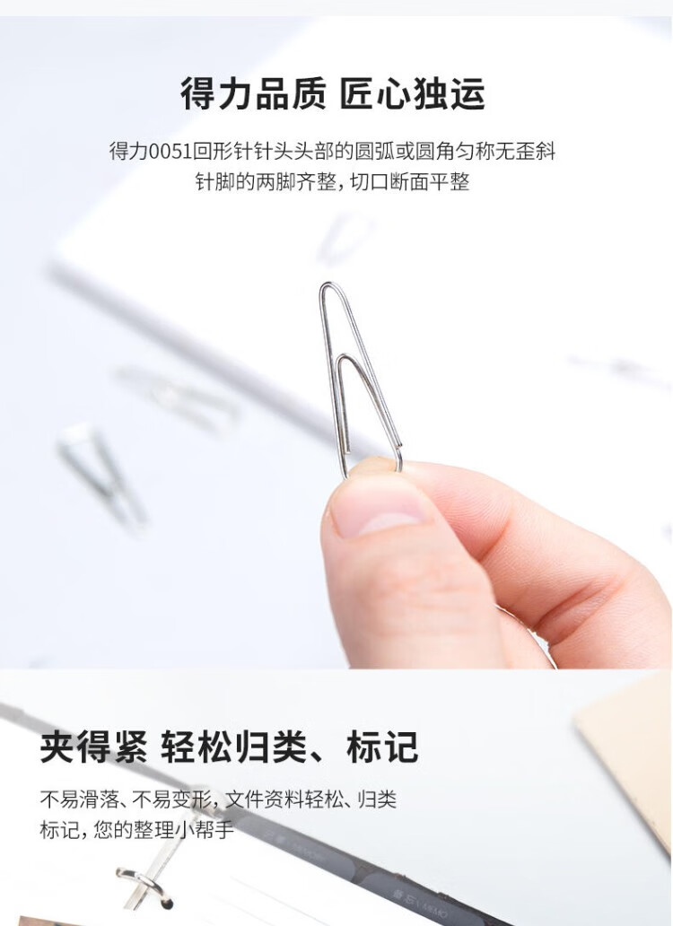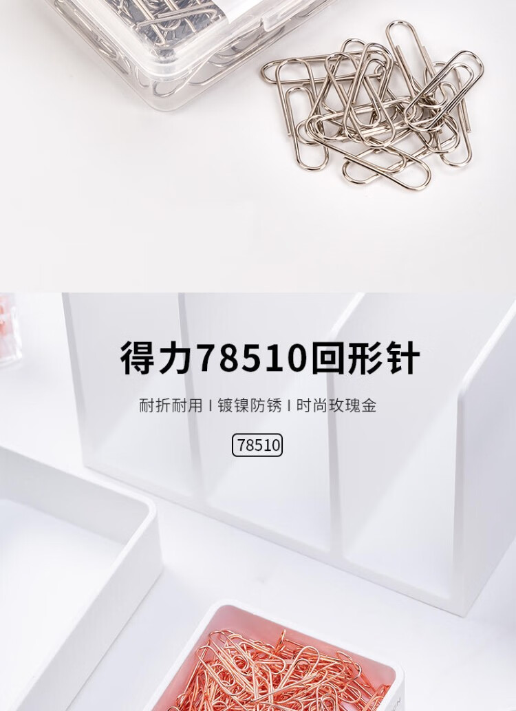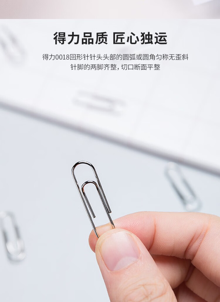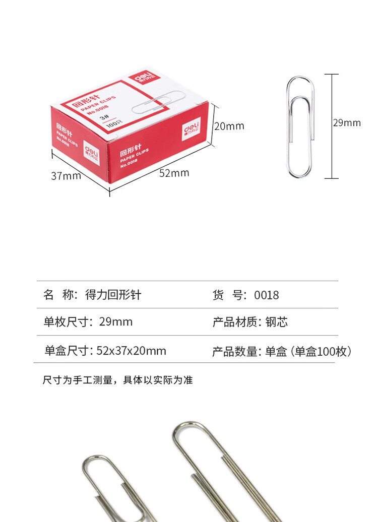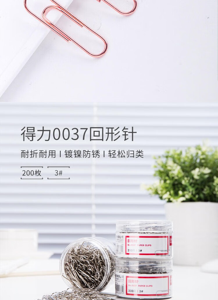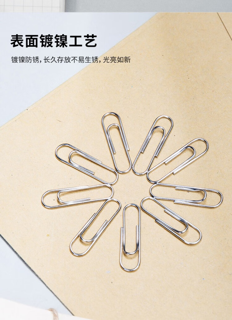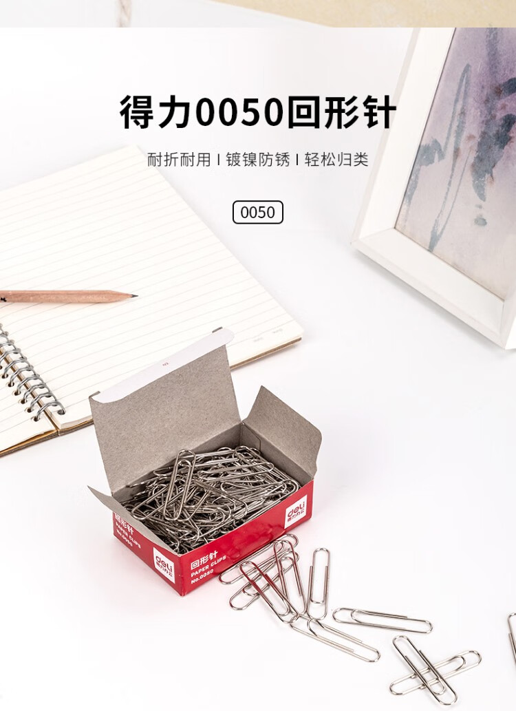 得力(deli)防锈回形针镀镍50mm 8#(100枚/盒)0050