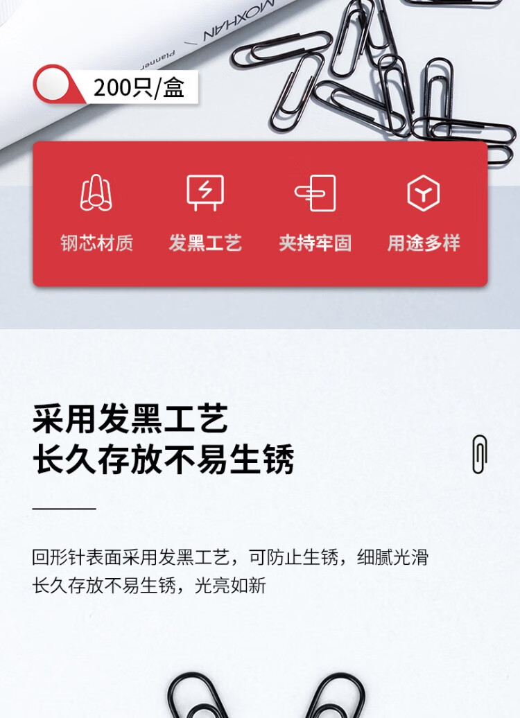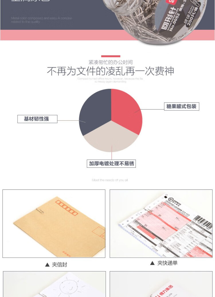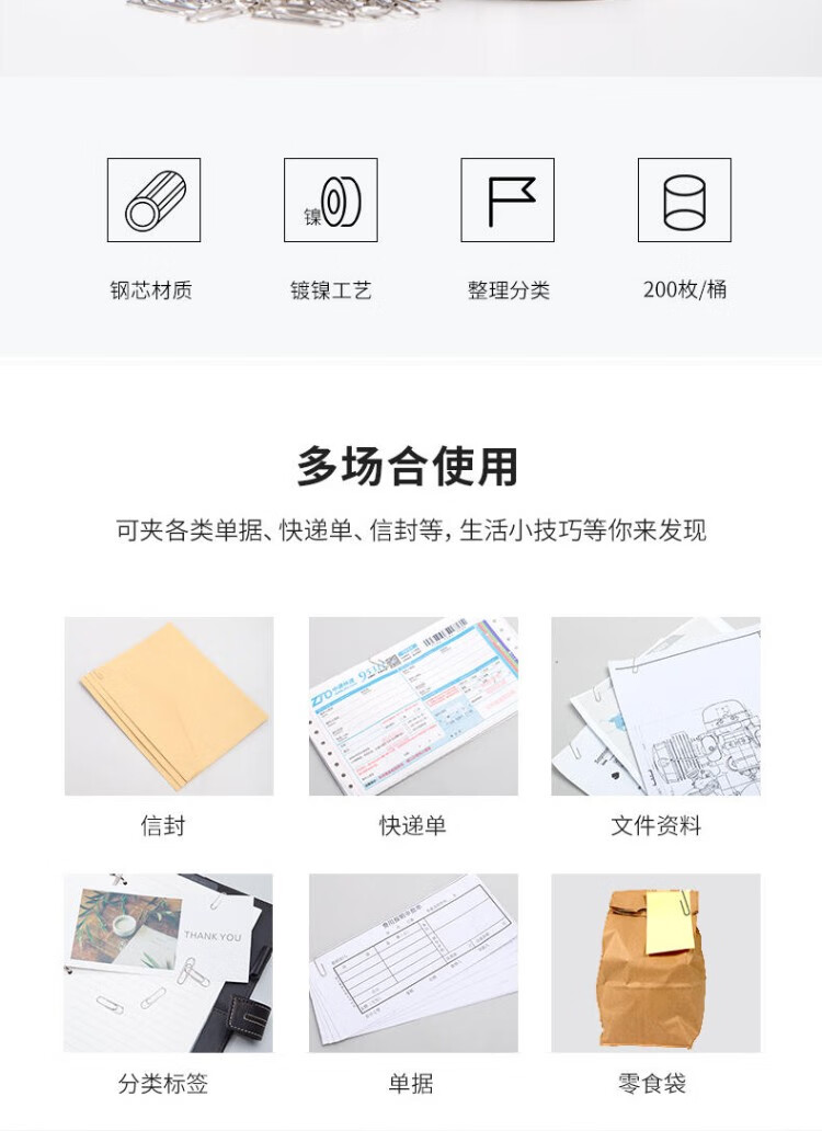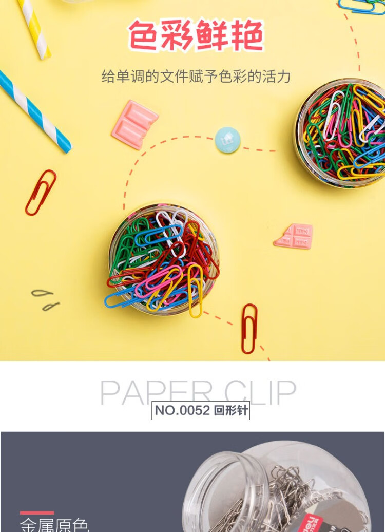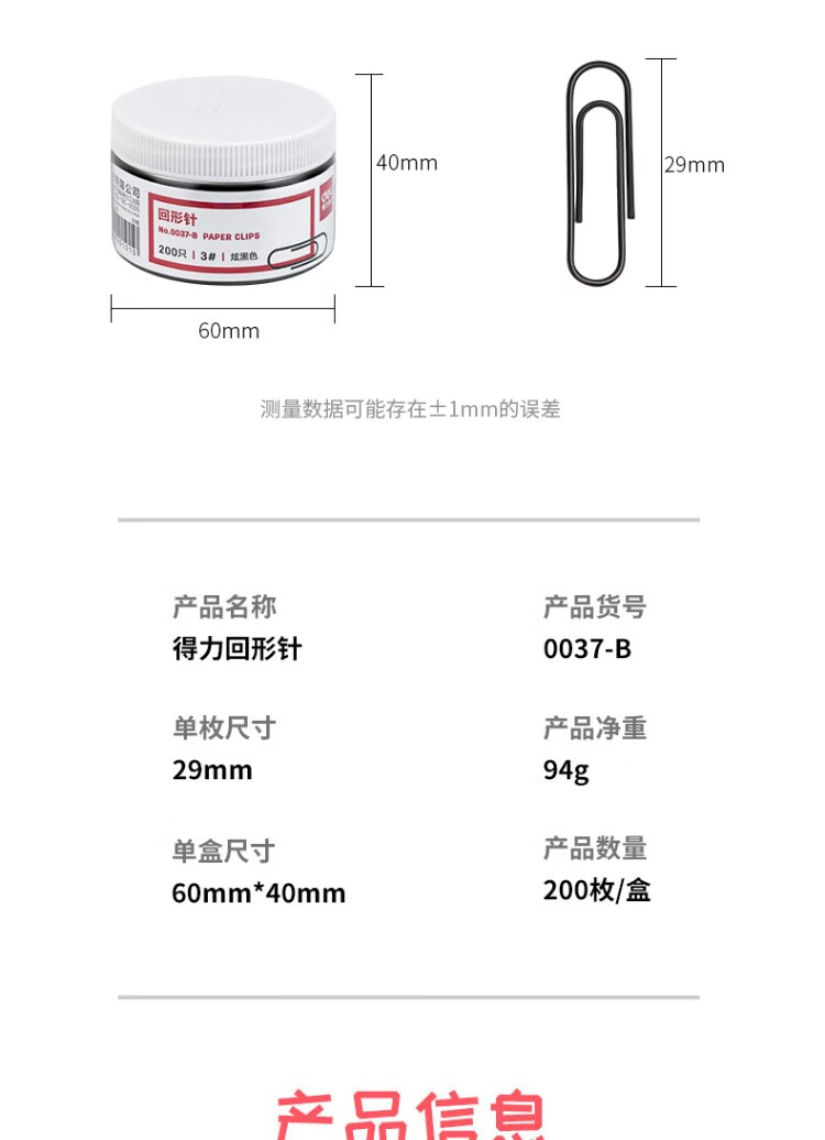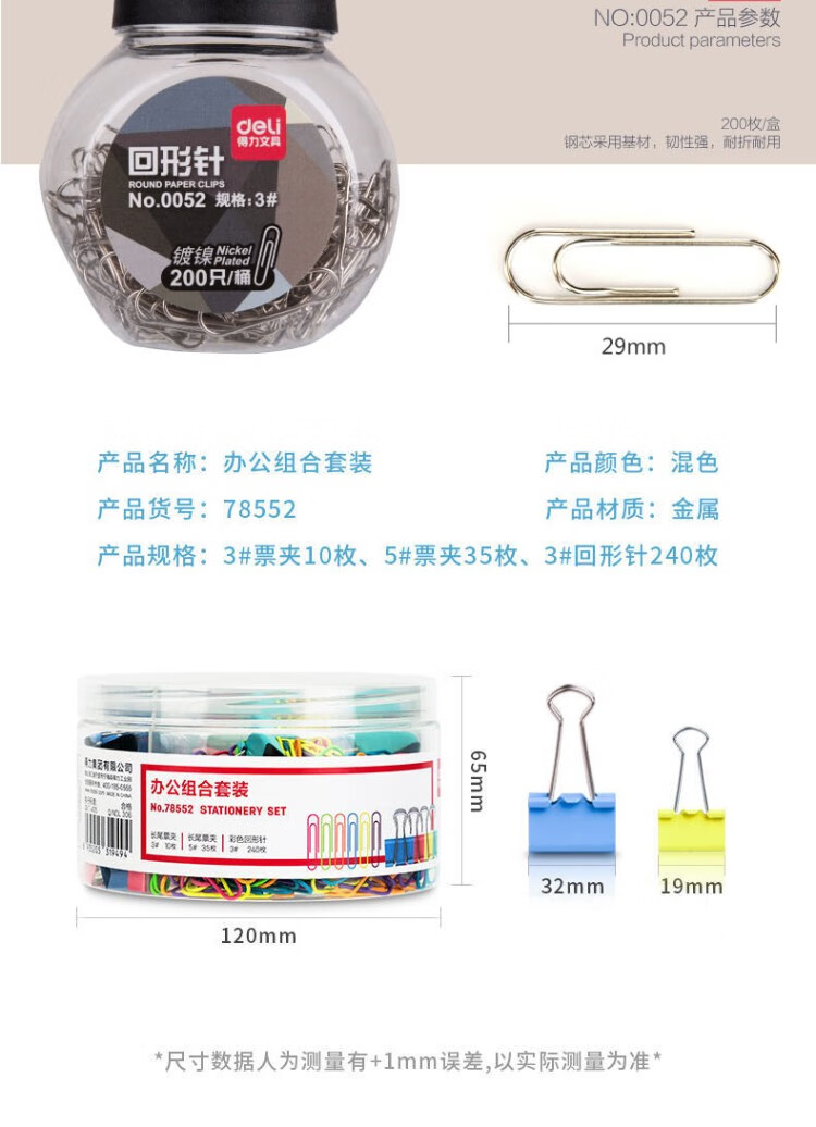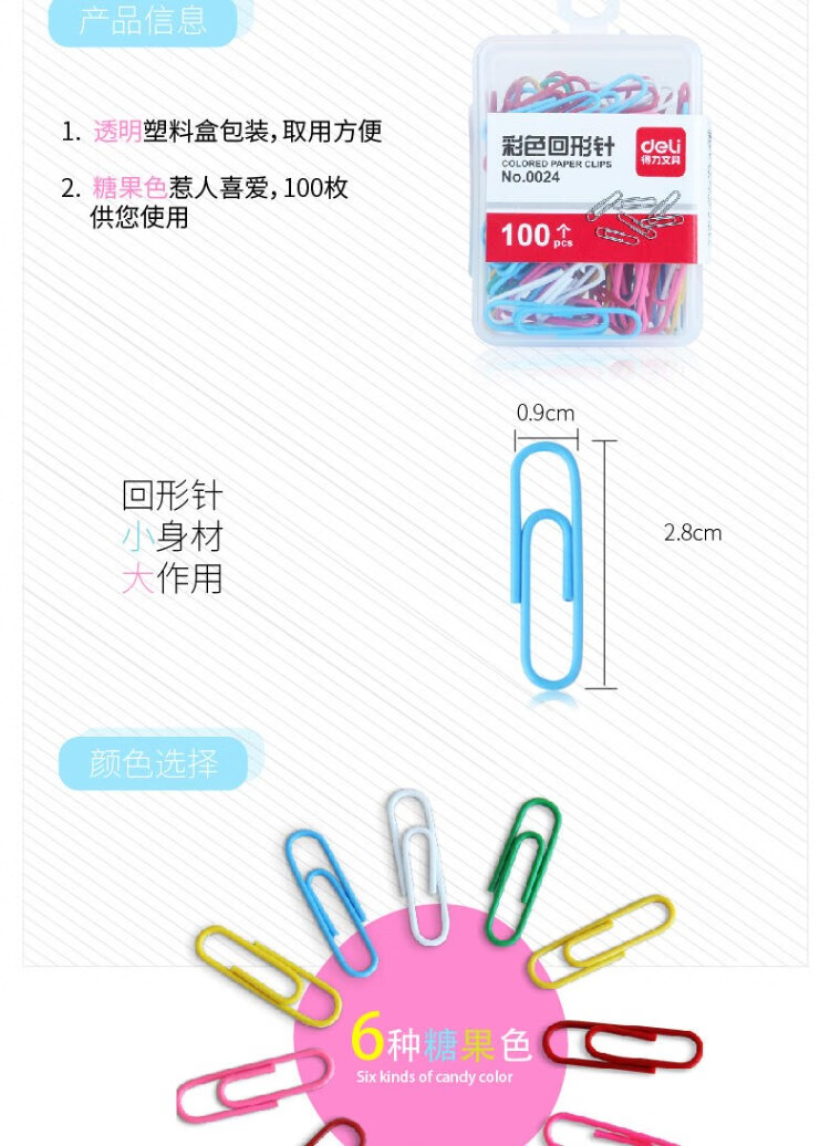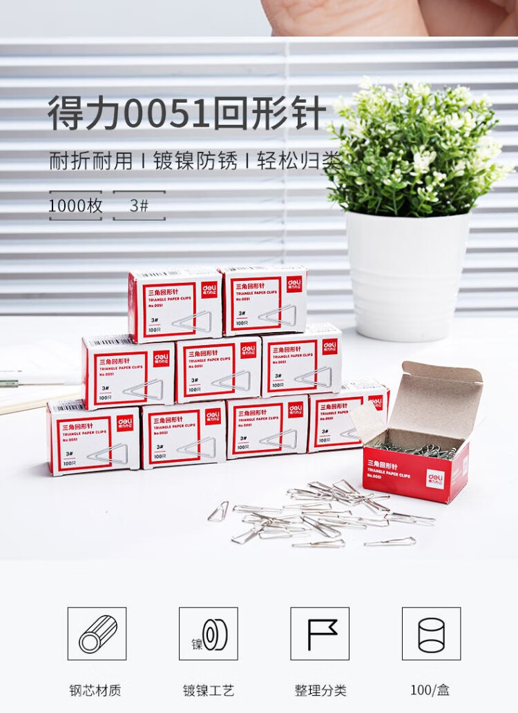 得力(deli)防锈回形针镀镍50mm 8#(100枚/盒)0050