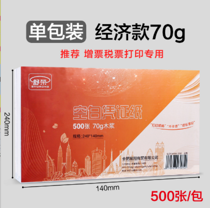 天和益和专用 70g空白凭证纸(240*140mm/500张)