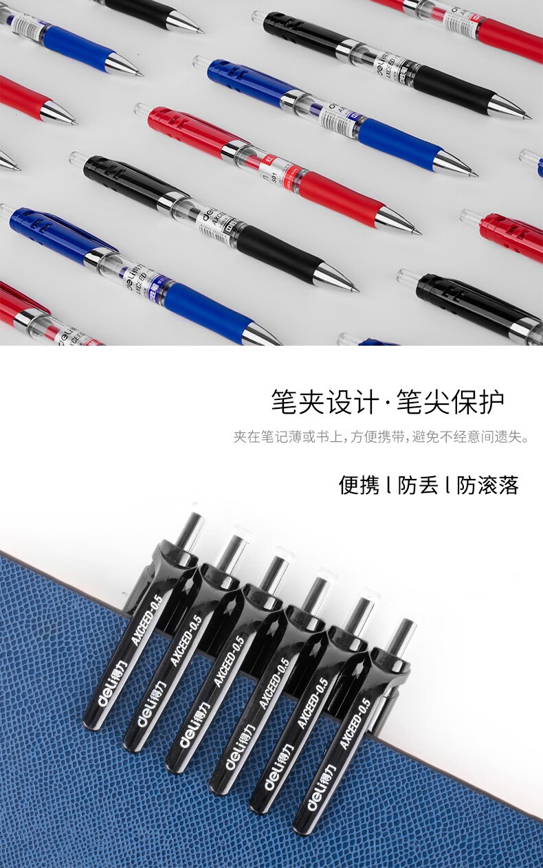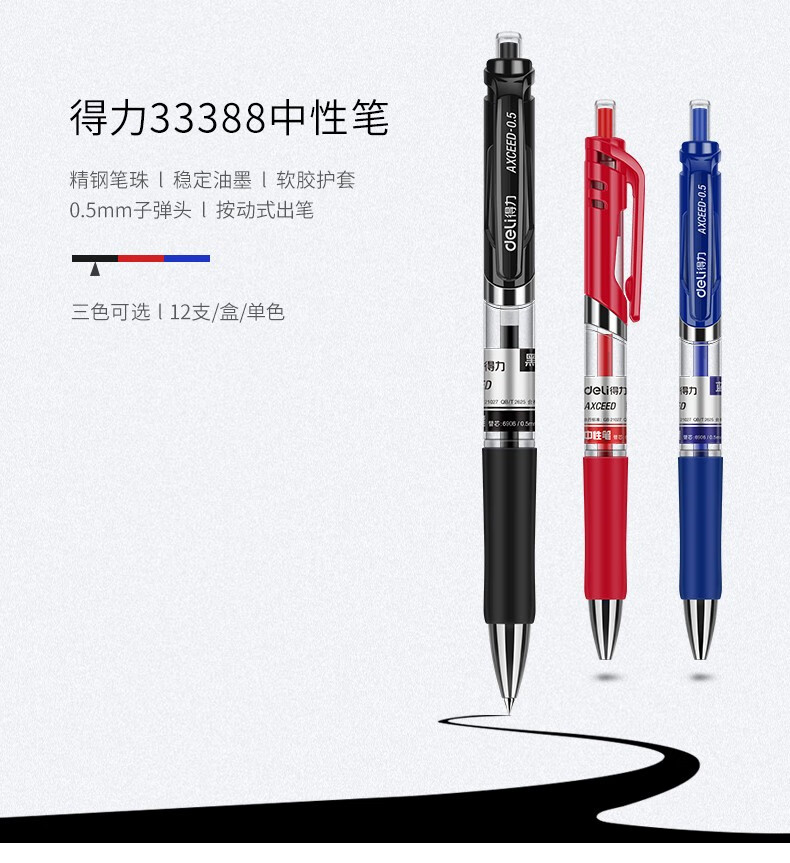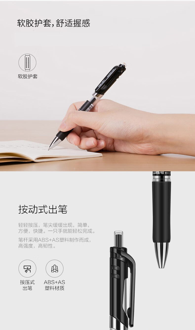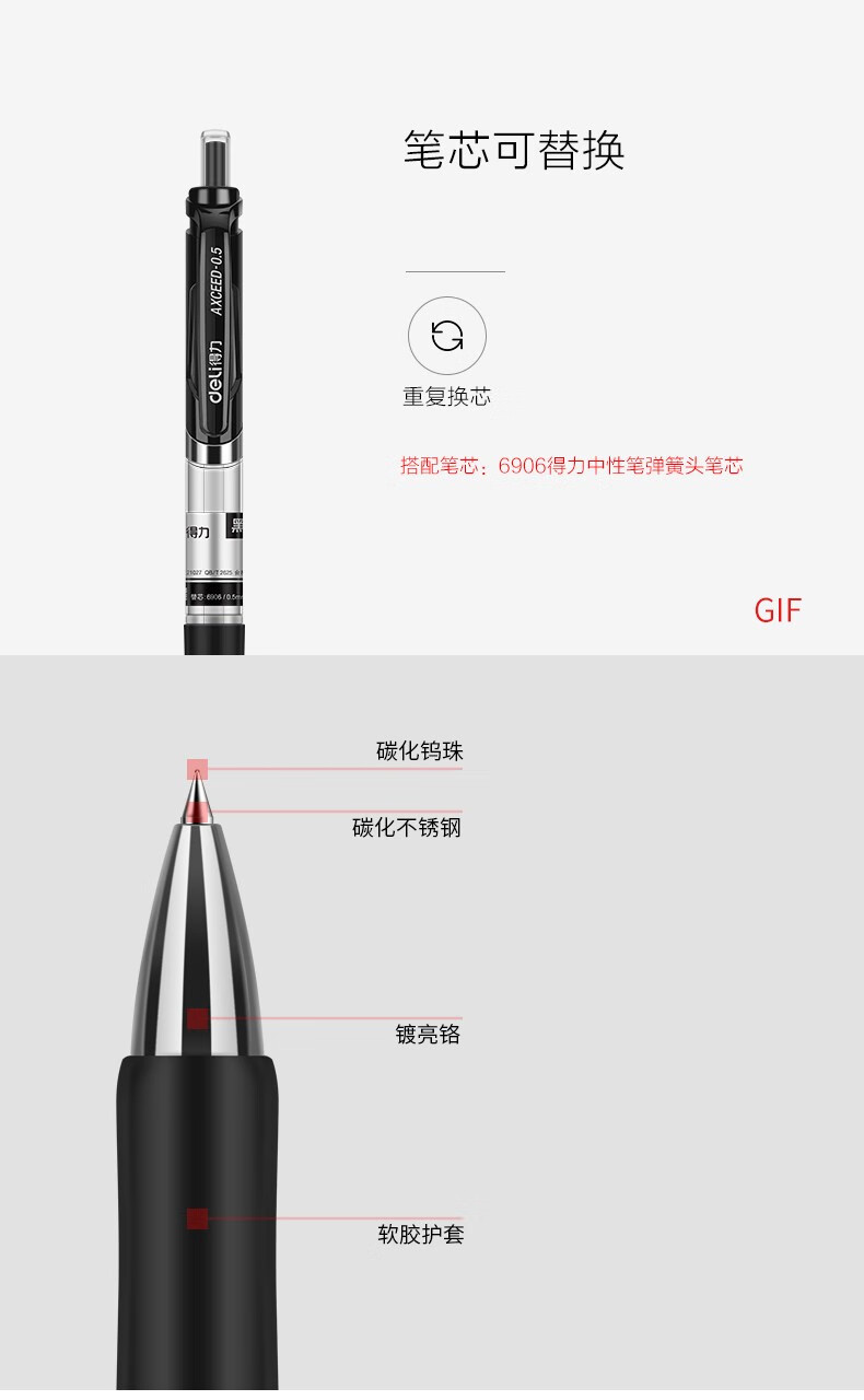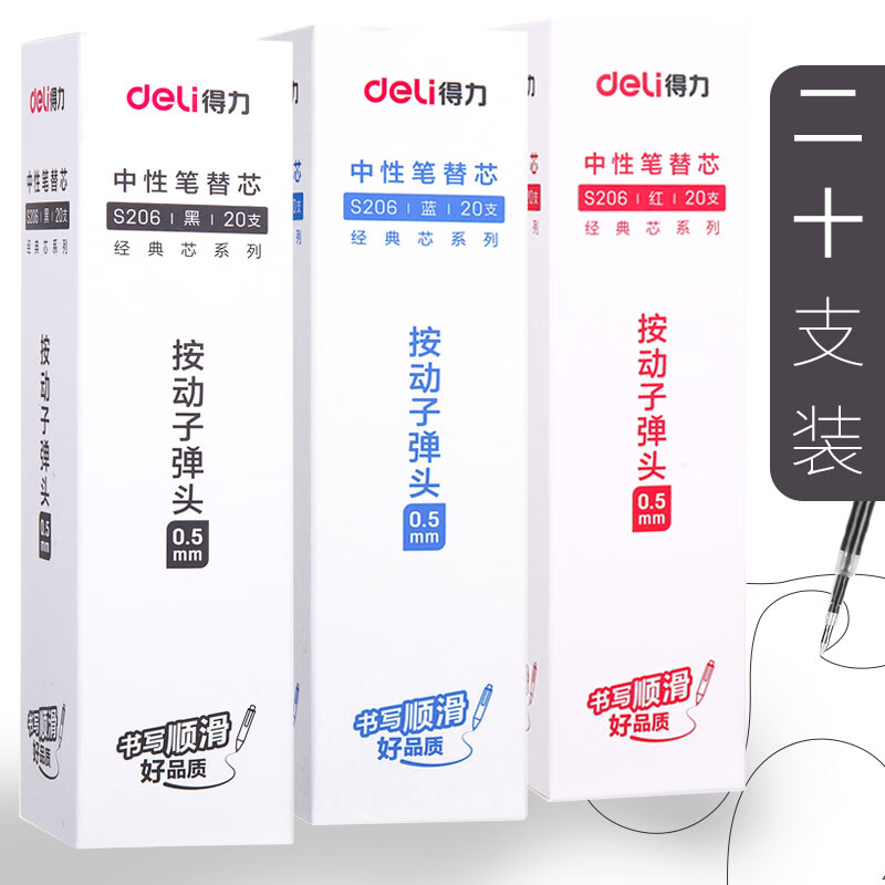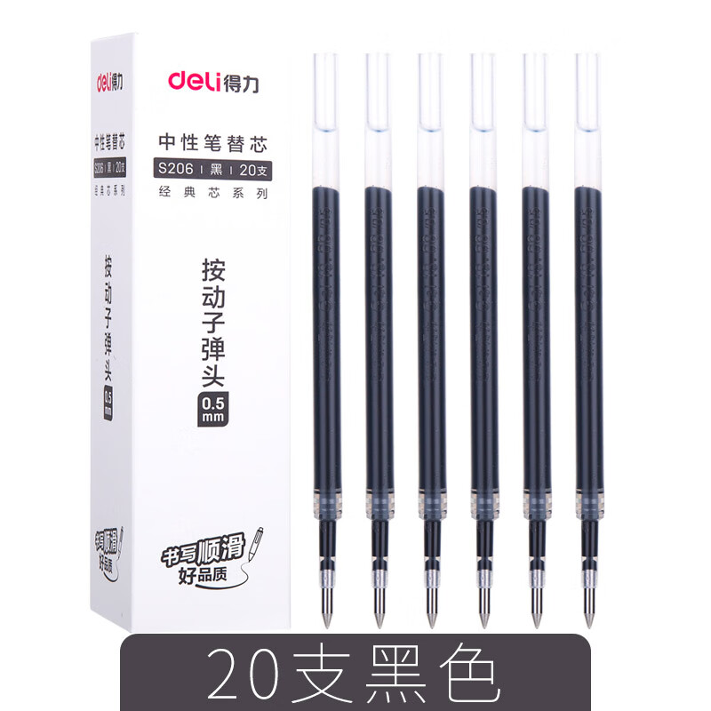 得力(deli) 按动中性笔芯0.5mm大容量可替晨光G-5笔芯(S206)