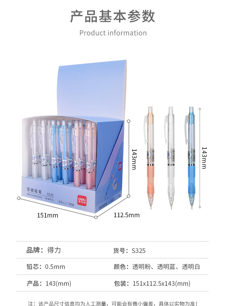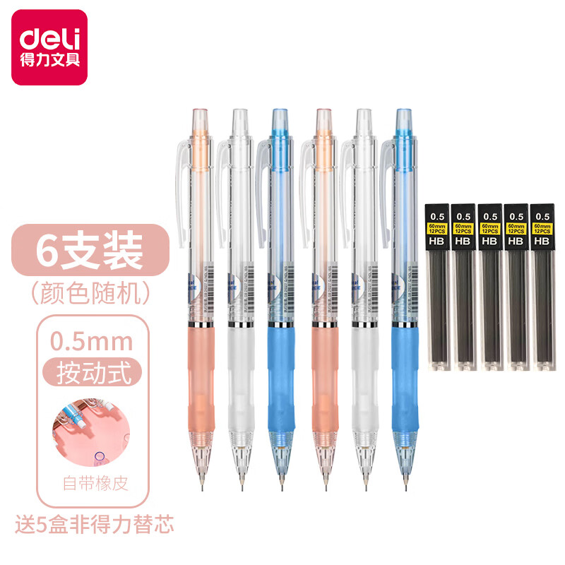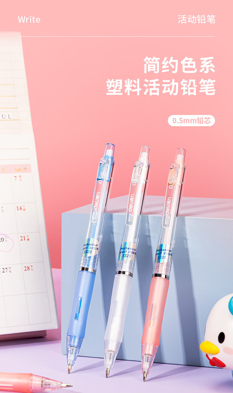 得力(deli)自动铅笔0.5mm不断芯简约可爱活动铅笔s325