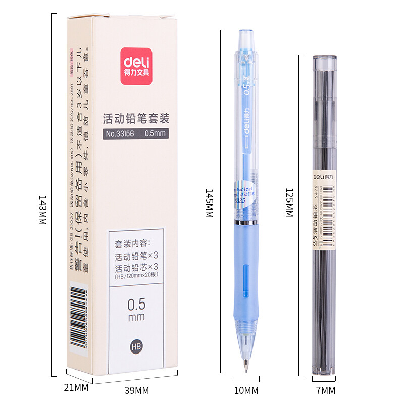 得力(deli)0.5mm活动铅笔附HB活动铅芯 33156蓝