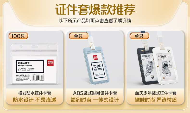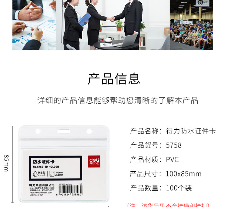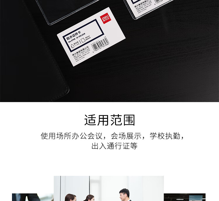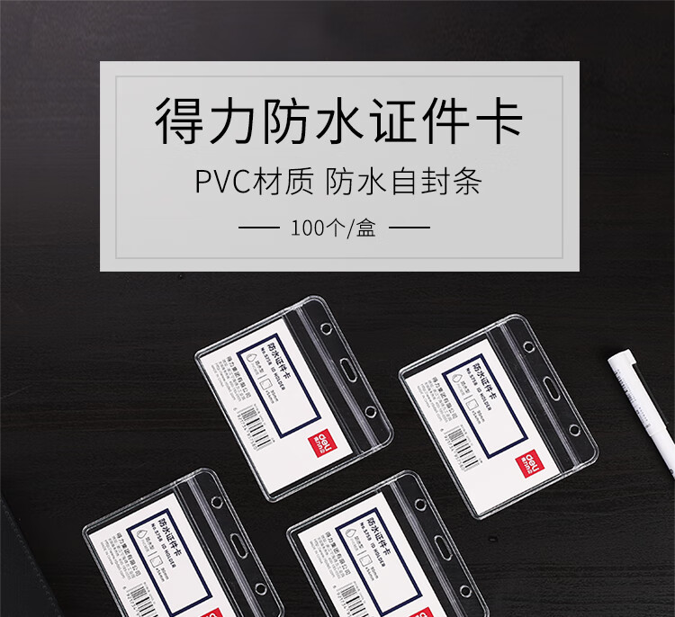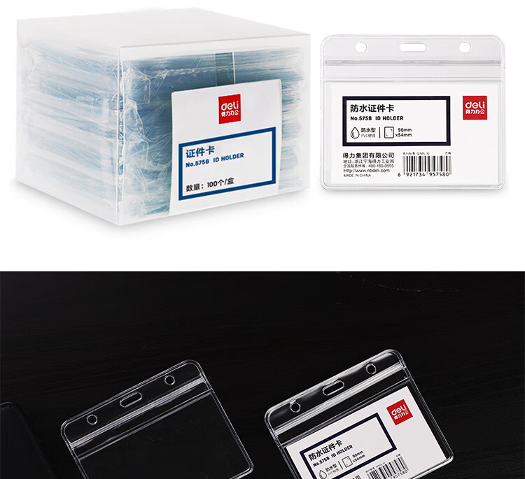 得力(deli)横式防水工作牌证件卡套员工牌卡套(透明)(10只/包)5758