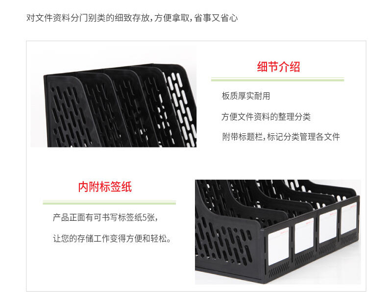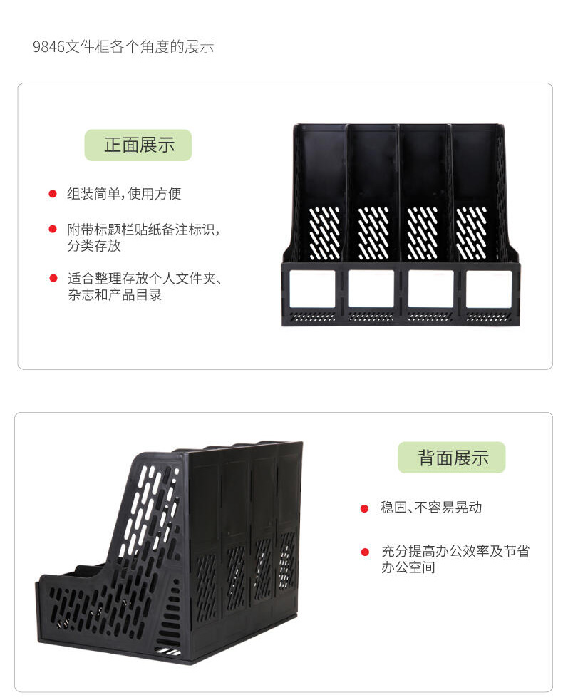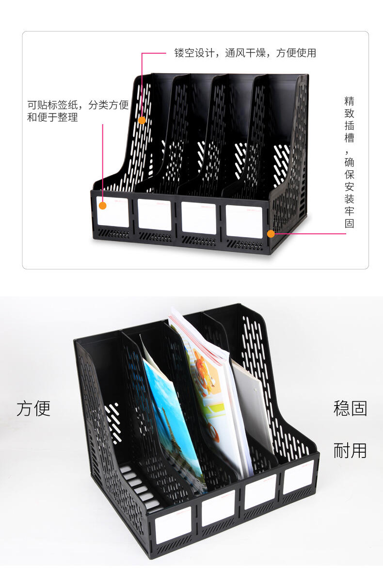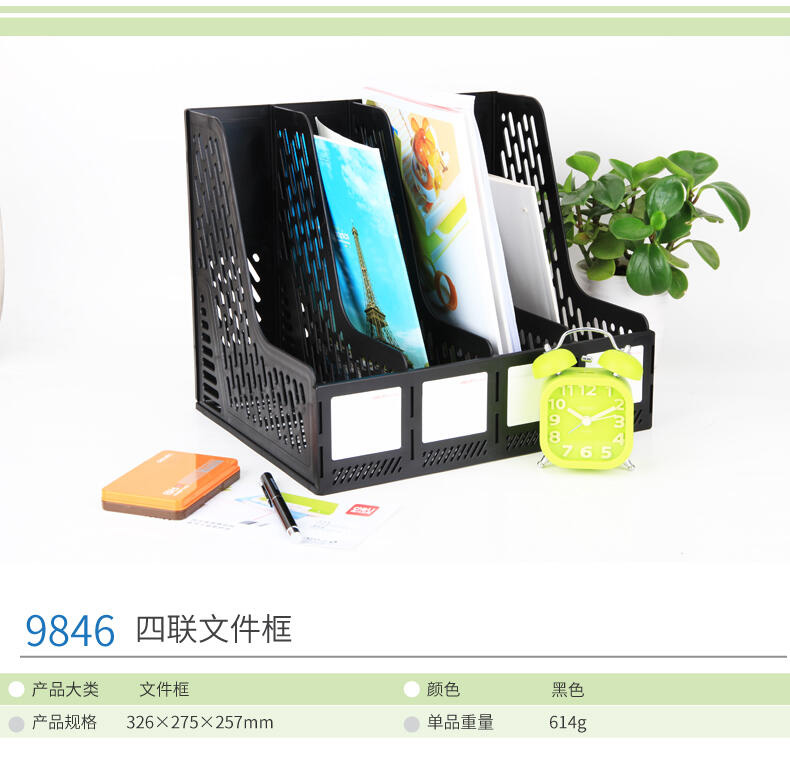 得力四联文件筐9846(黑色) 桌面资料架 四格文件栏