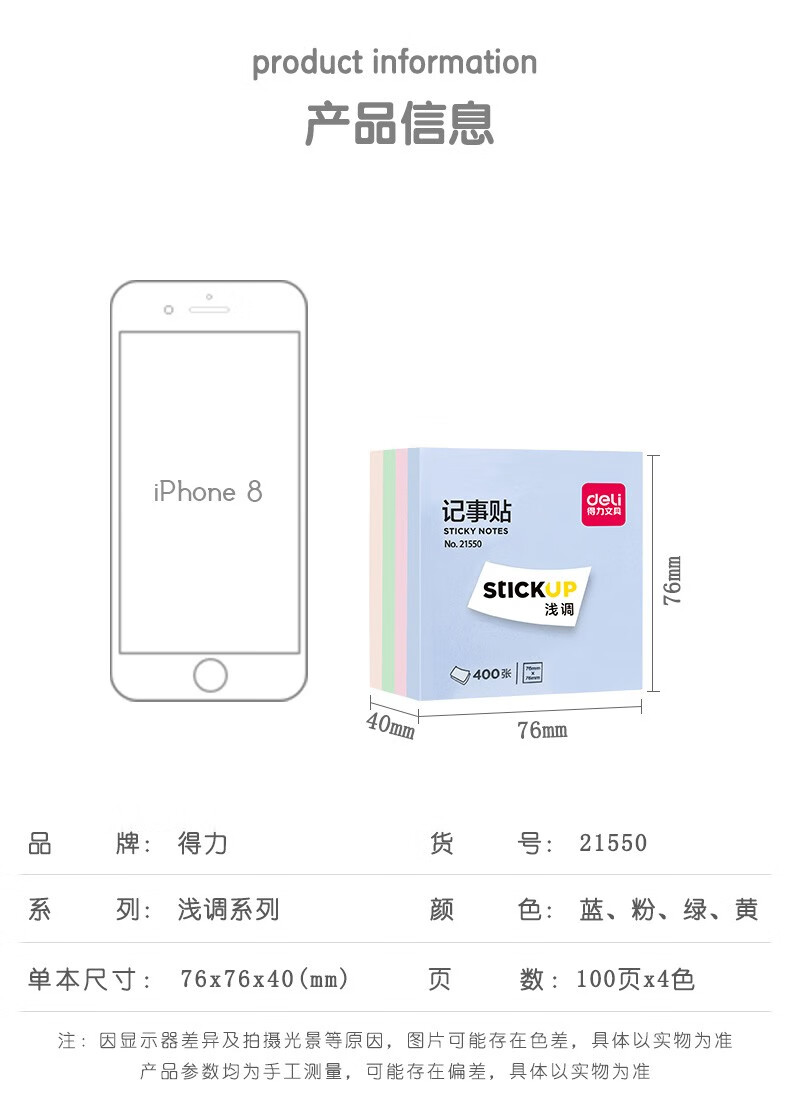 得力(deli)21550 400页 记事贴 76*76mm 混色