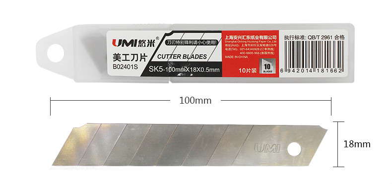 悠米B02402S 小号美工刀片9mm(10片)