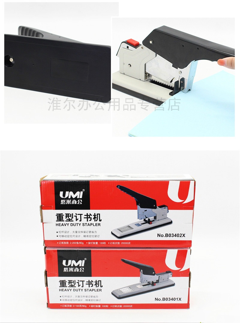 悠米重型厚层订书机B03401X 可钉2-100页(颜色随机)