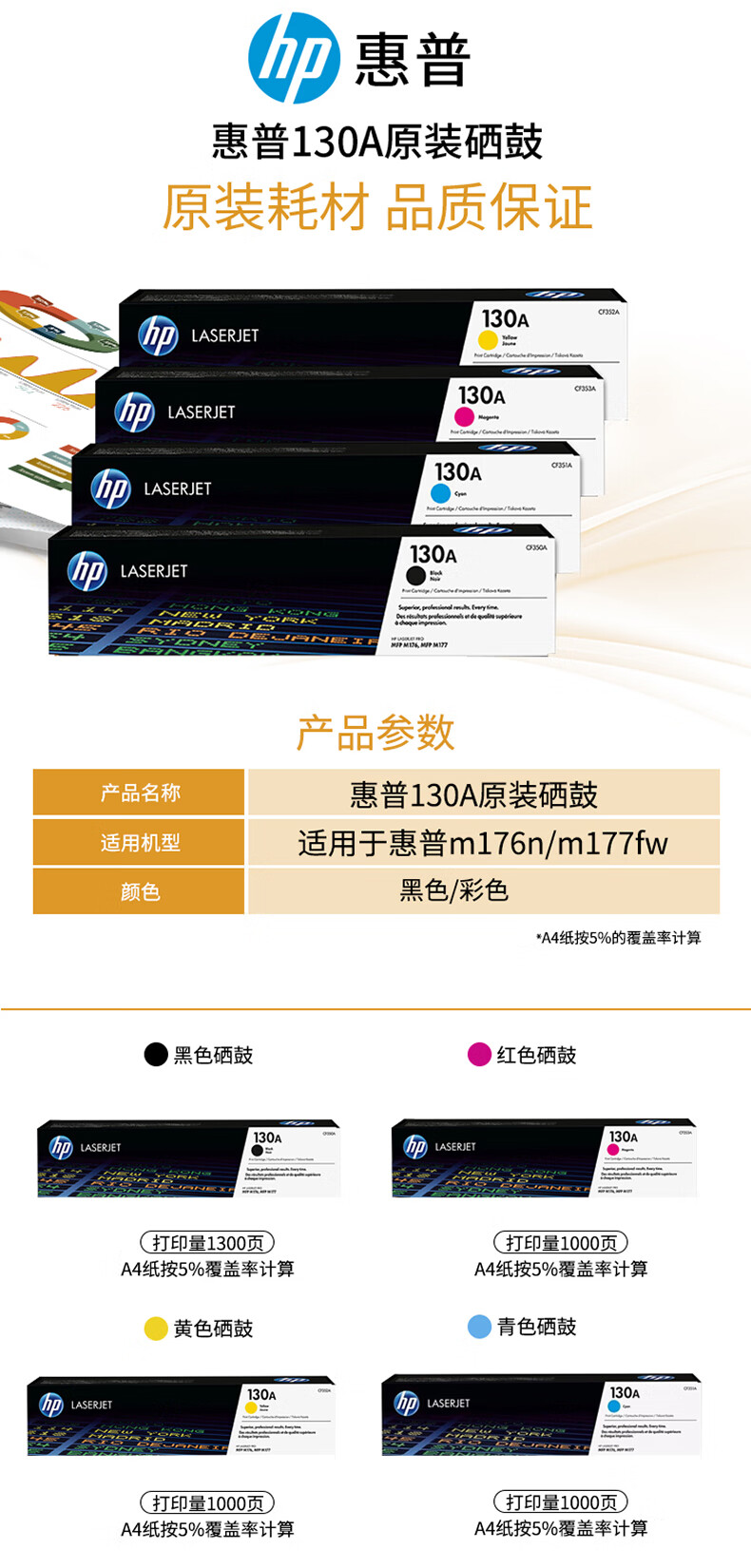 惠普(HP)CF353A 130A 原装红色硒鼓(适用M176n M177fw)约1000页 打印机硒鼓