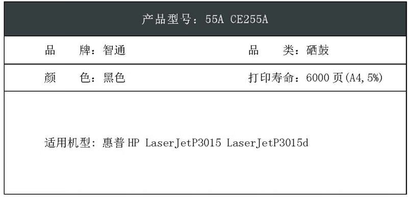 智通ZT CE255A黑色硒鼓(带芯片)-PLUS版 适用于:惠普HP LaserJetP3015 LaserJetP3015d