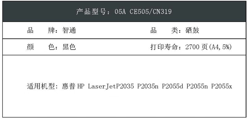 智通ZT CE505A/319黑色硒鼓(带芯片)-PLUS版 适用于:惠普HP LaserJetP2035 P2035n P2055d P2055n P2055x