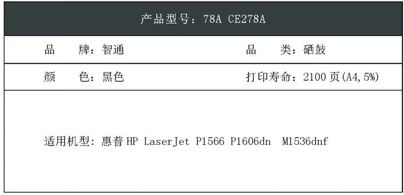 智通ZT CE278A黑色硒鼓(带芯片)-PLUS版 适用于:惠普HP LaserJet P1566 P1606dn M1536dnf