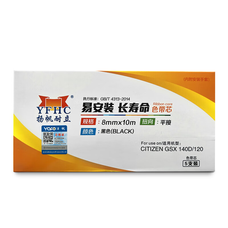 扬帆耐立GSX140D/120D色带芯5支装/盒 适用西铁城GSX120/180D/240映美230/530KII联想DP500/DP300打印机色带芯