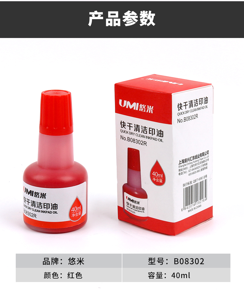 悠米 快干印油40mL B08302R 红